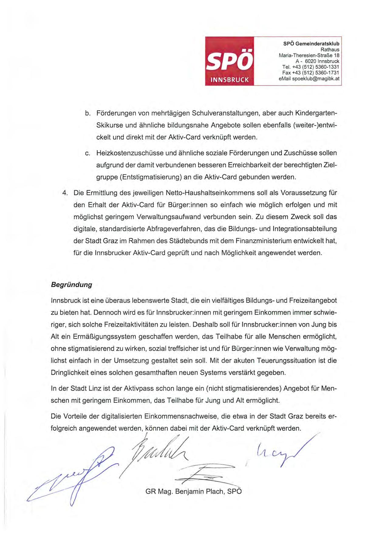 für die lnnsbrucker Aktiv-Card geprüft und nach Möglichkeit angewendet werden.