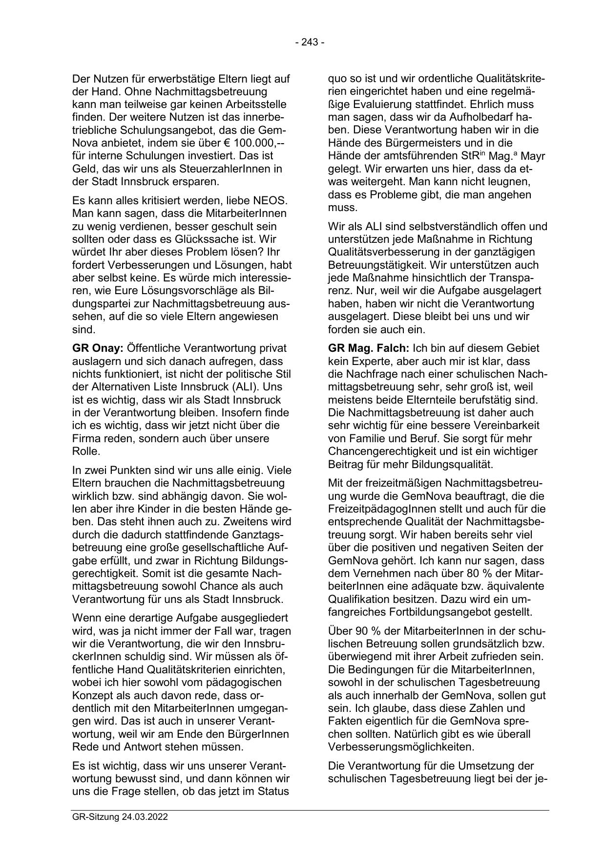wir die Verantwortung, die wir den InnsbruckerInnen schuldig sind. Wir müssen als öffentliche Hand Qualitätskriterien einrichten,