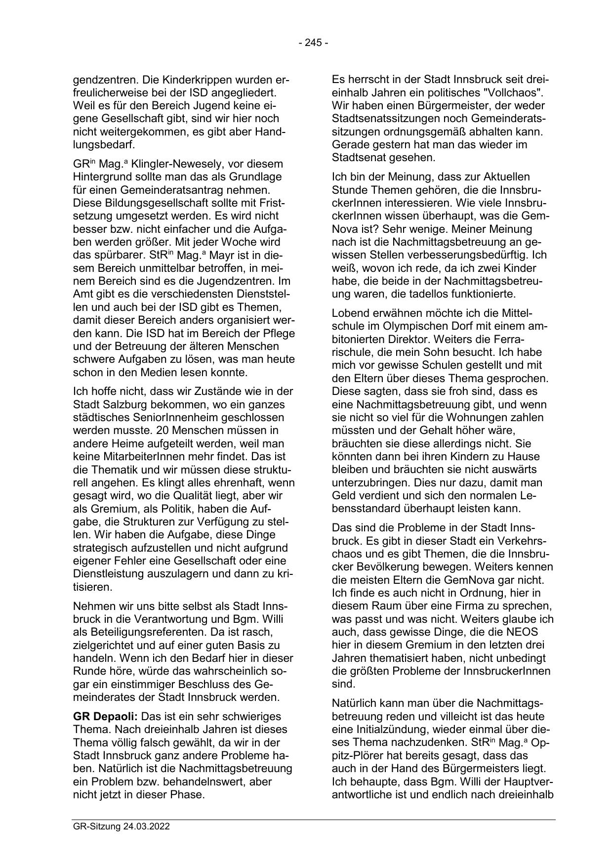 GR Depaoli: Das ist ein sehr schwieriges