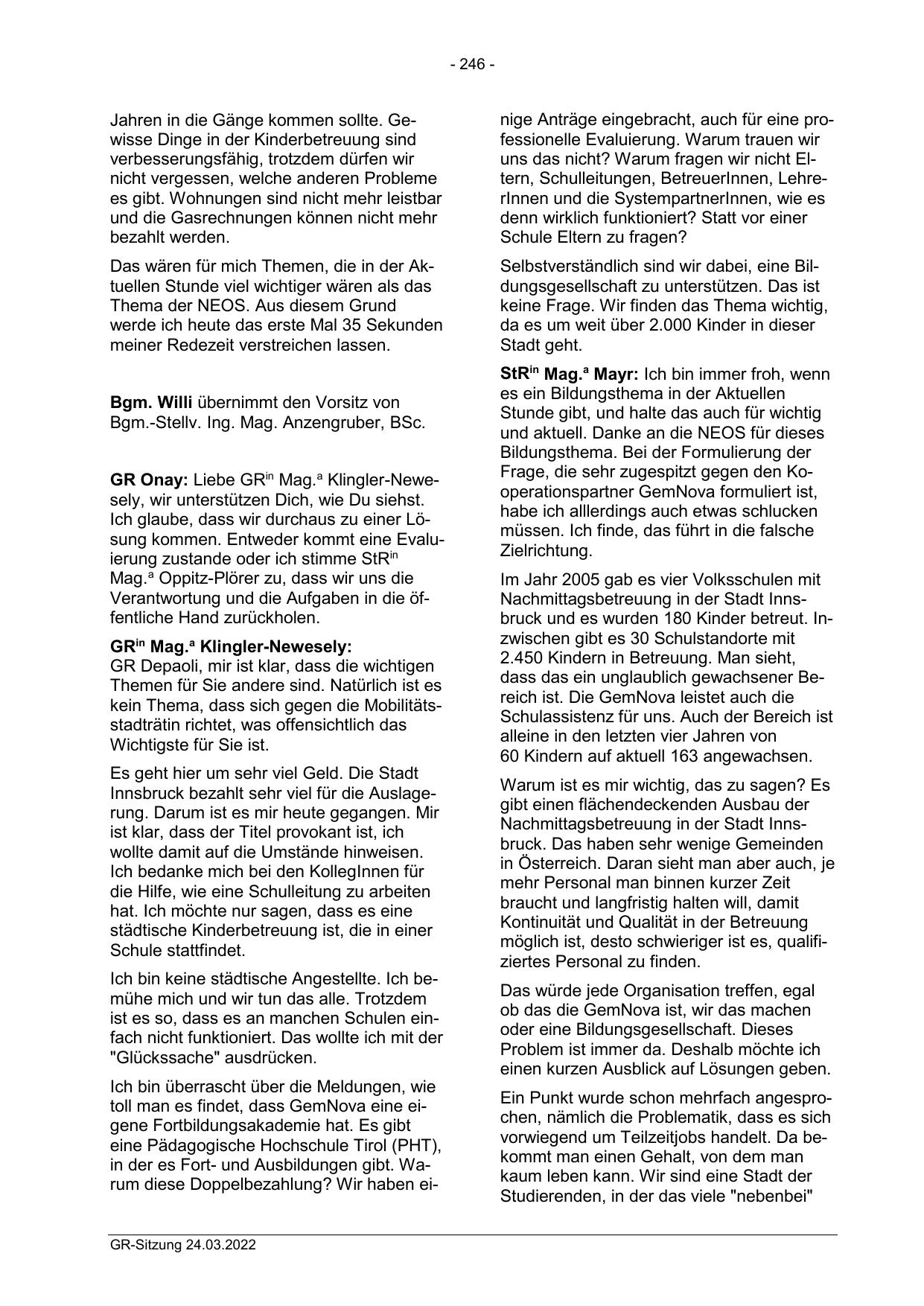 GR Onay: Liebe GRin Mag.a Klingler-Newesely, wir unterstützen Dich, wie Du siehst.