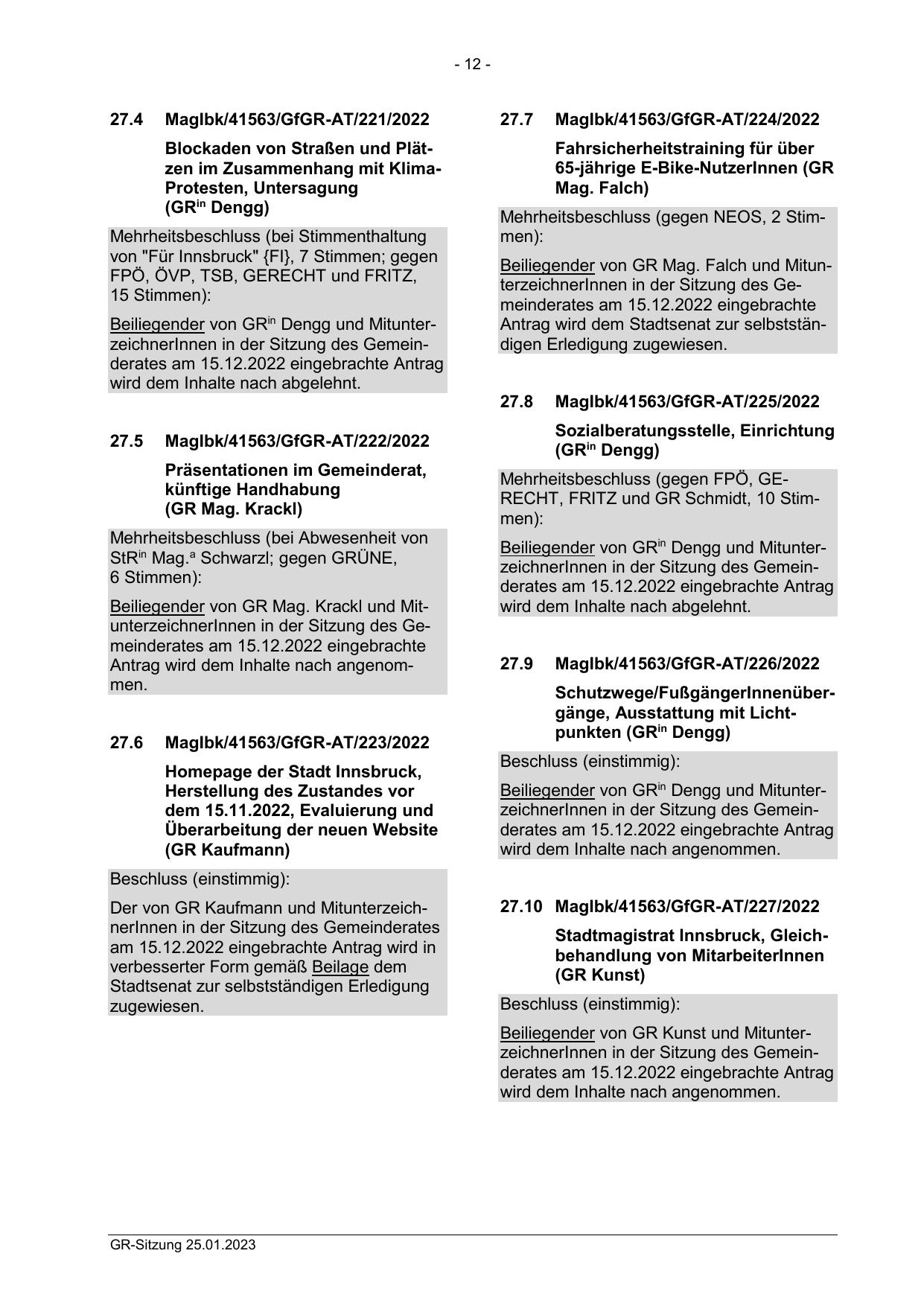 Beiliegender von GRin Dengg und MitunterzeichnerInnen in der Sitzung des Gemeinderates am 15.12.2022 eingebrachte Antrag