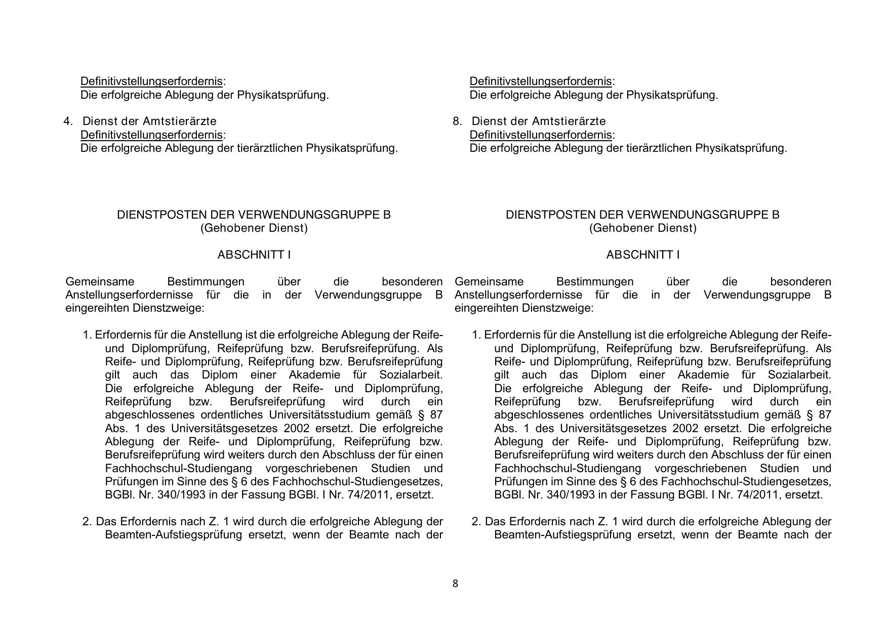 Verwendungsgruppe B Anstellungserfordernisse für die