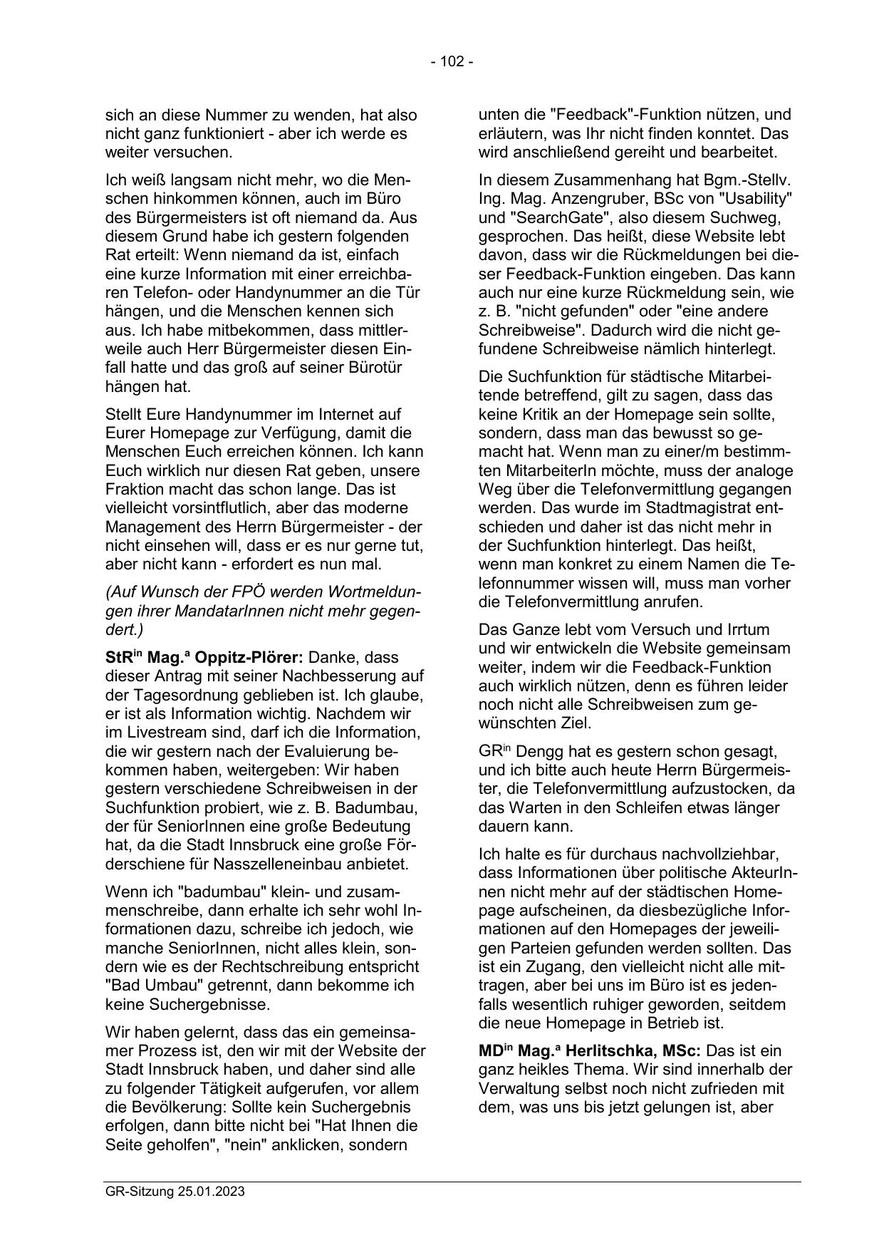 dass Informationen über politische AkteurInnen nicht mehr auf der städtischen Homepage aufscheinen, da diesbezügliche Informationen auf den Homepages der jeweiligen Parteien gefunden werden sollten. Das