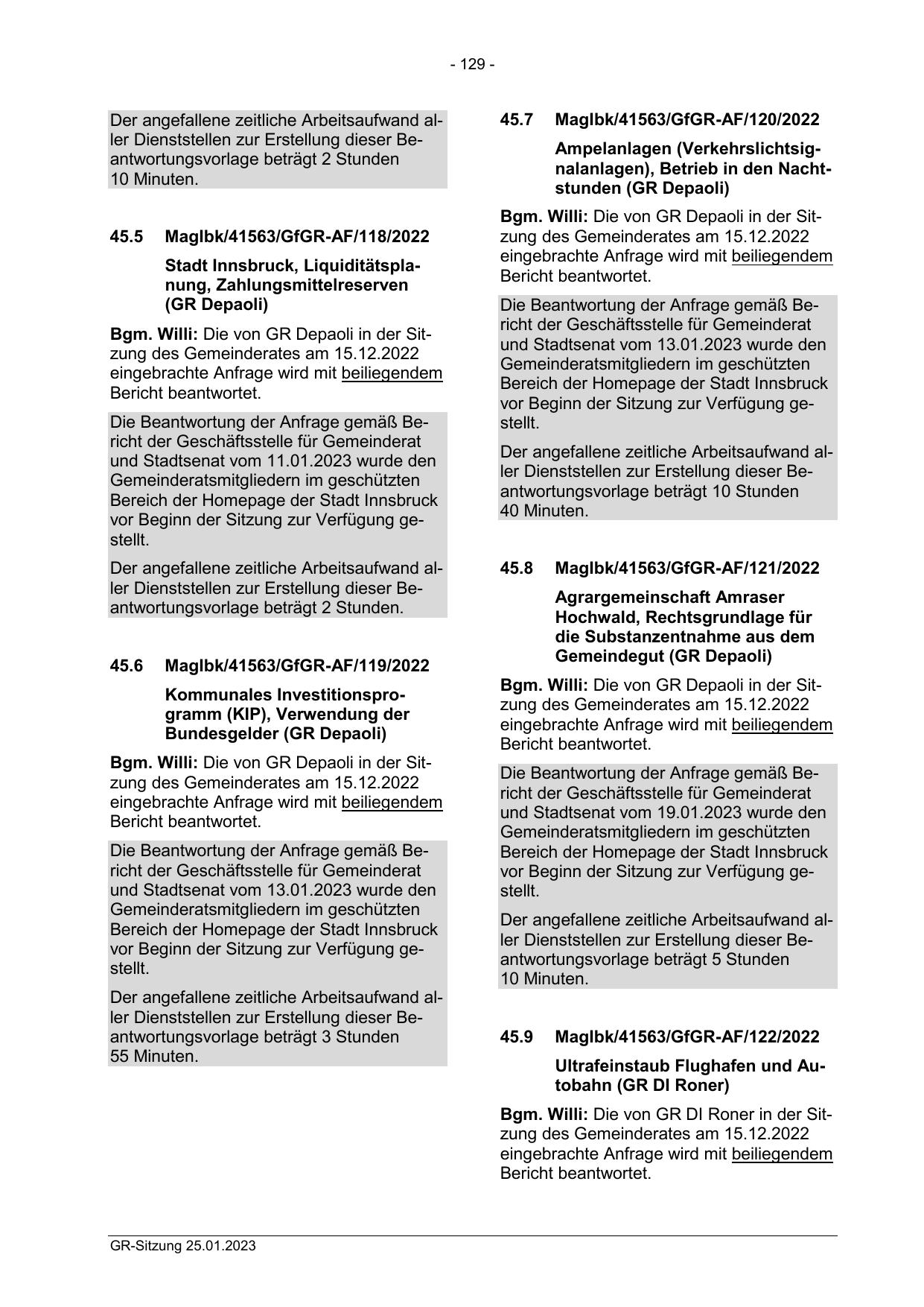 Bgm. Willi: Die von GR Depaoli in der Sitzung des Gemeinderates am 15.12.2022