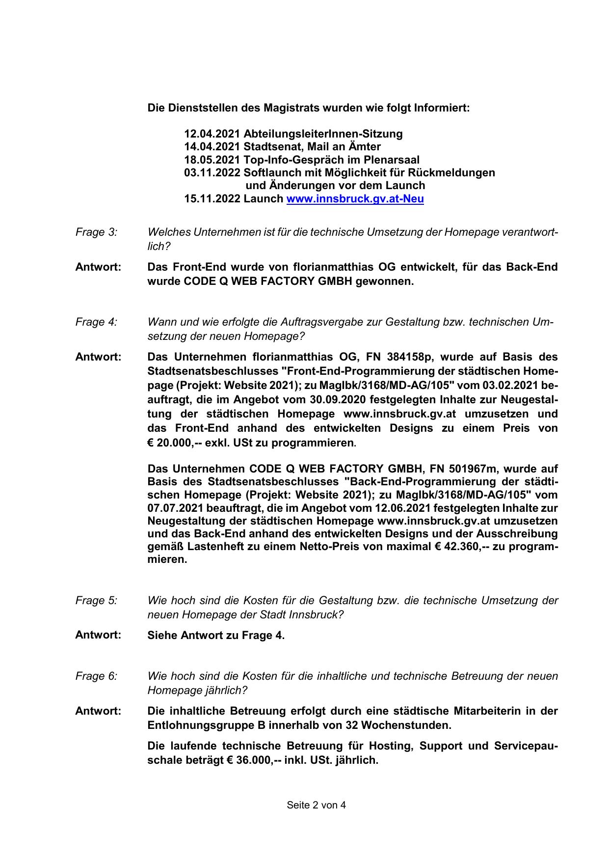 Basis des Stadtsenatsbeschlusses "Back-End-Programmierung der städtischen Homepage (Projekt: Website 2021); zu MagIbk/3168/MD-AG/105" vom