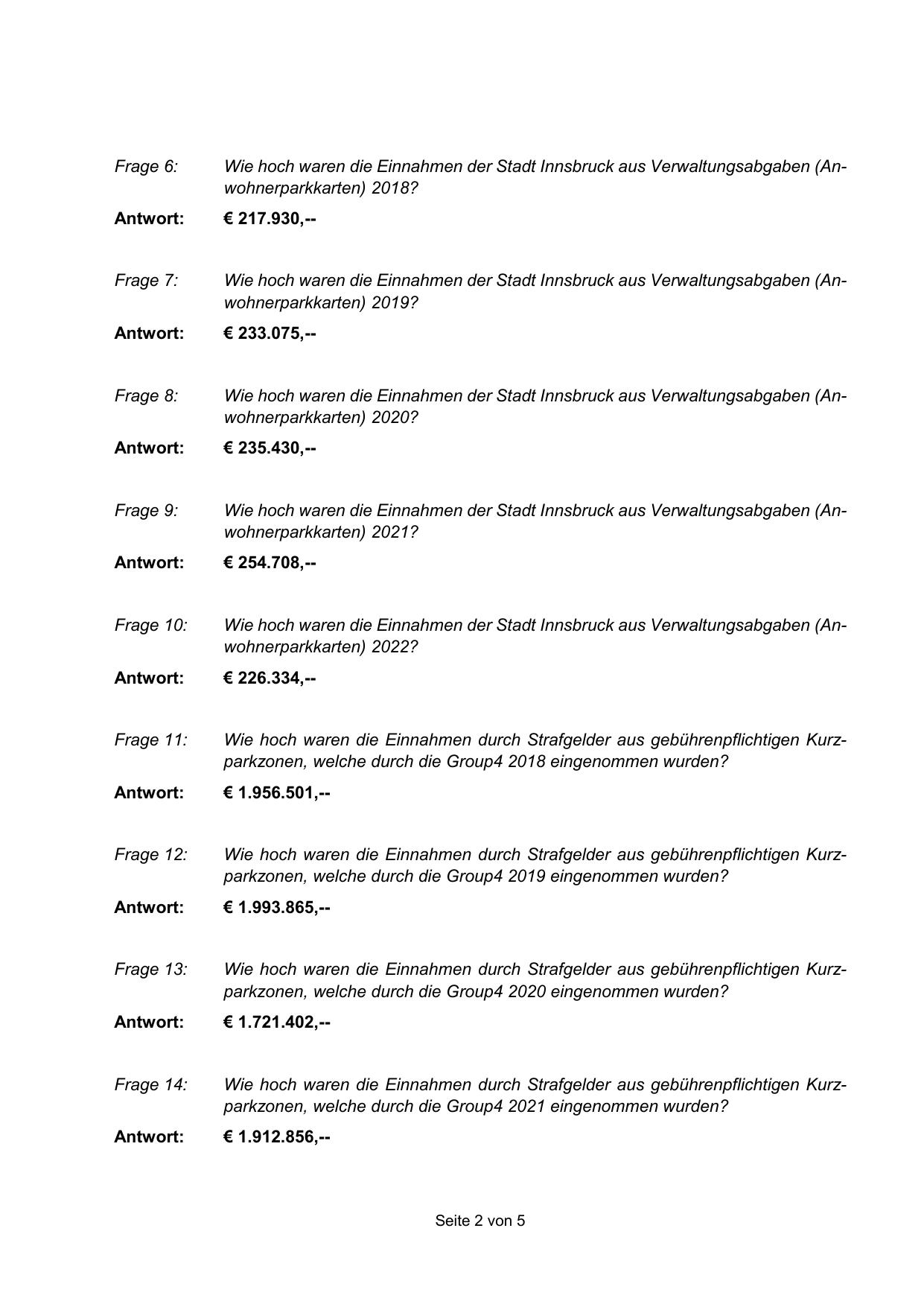 Wie hoch waren die Einnahmen der Stadt Innsbruck aus Verwaltungsabgaben (Anwohnerparkkarten) 2022?