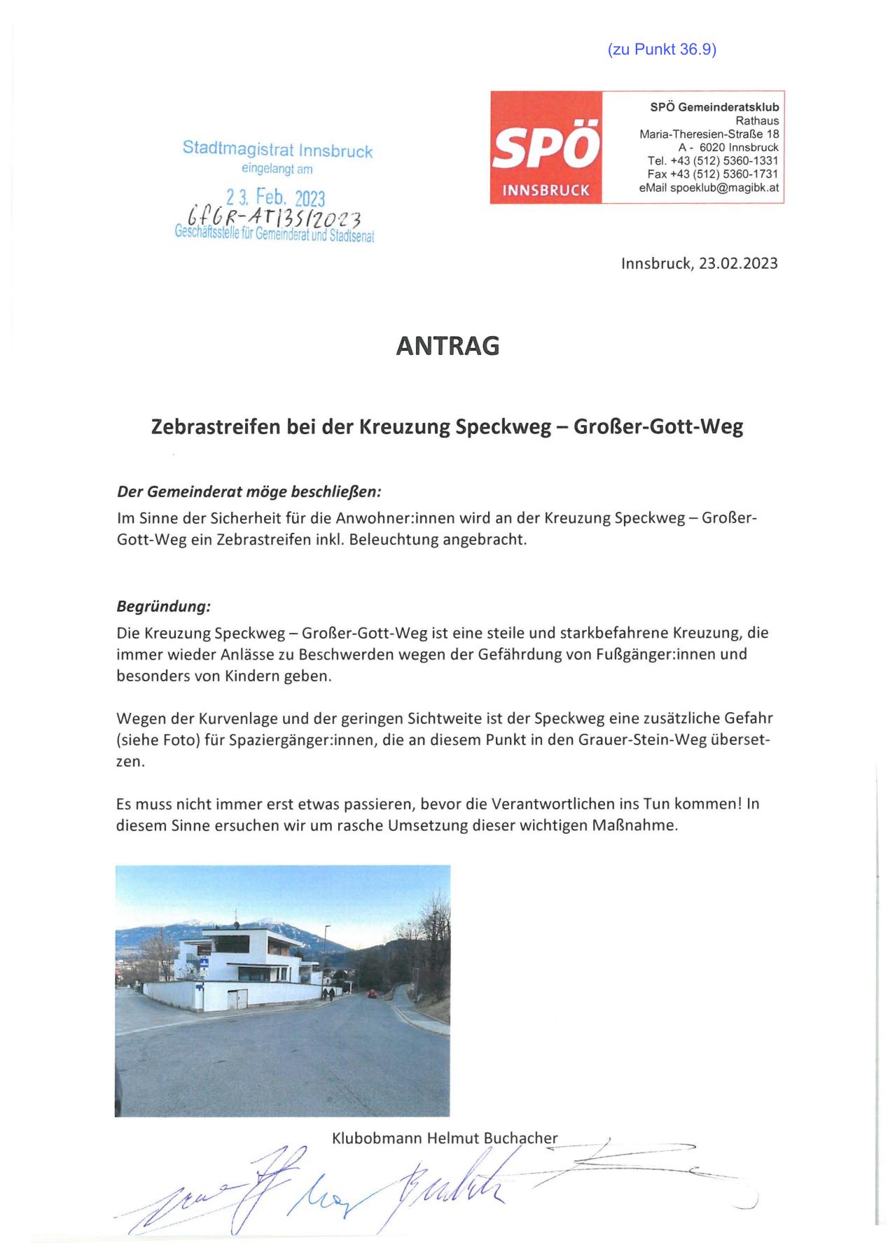 Im Sinne der Sicherheit für die Anwohner:innen wird an der Kreuzung Speckweg- GroßerGott-Weg ein Zebrastreifen inkl. Beleuchtung angebracht.