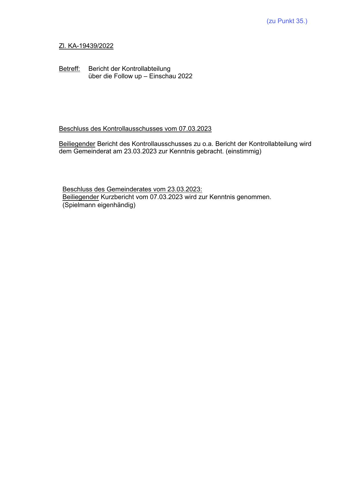 Beschluss des Kontrollausschusses vom 07.03.2023