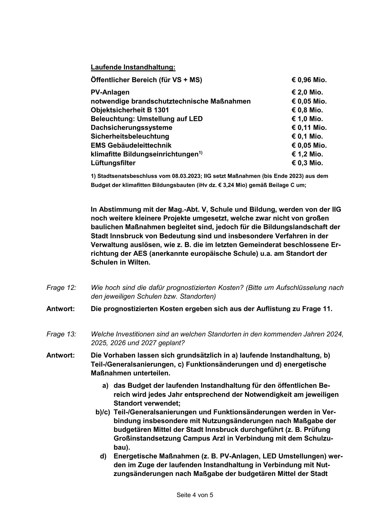 d) Energetische Maßnahmen (z. B. PV-Anlagen, LED Umstellungen) werden im Zuge der laufenden Instandhaltung in Verbindung mit Nutzungsänderungen nach Maßgabe der budgetären Mittel der Stadt