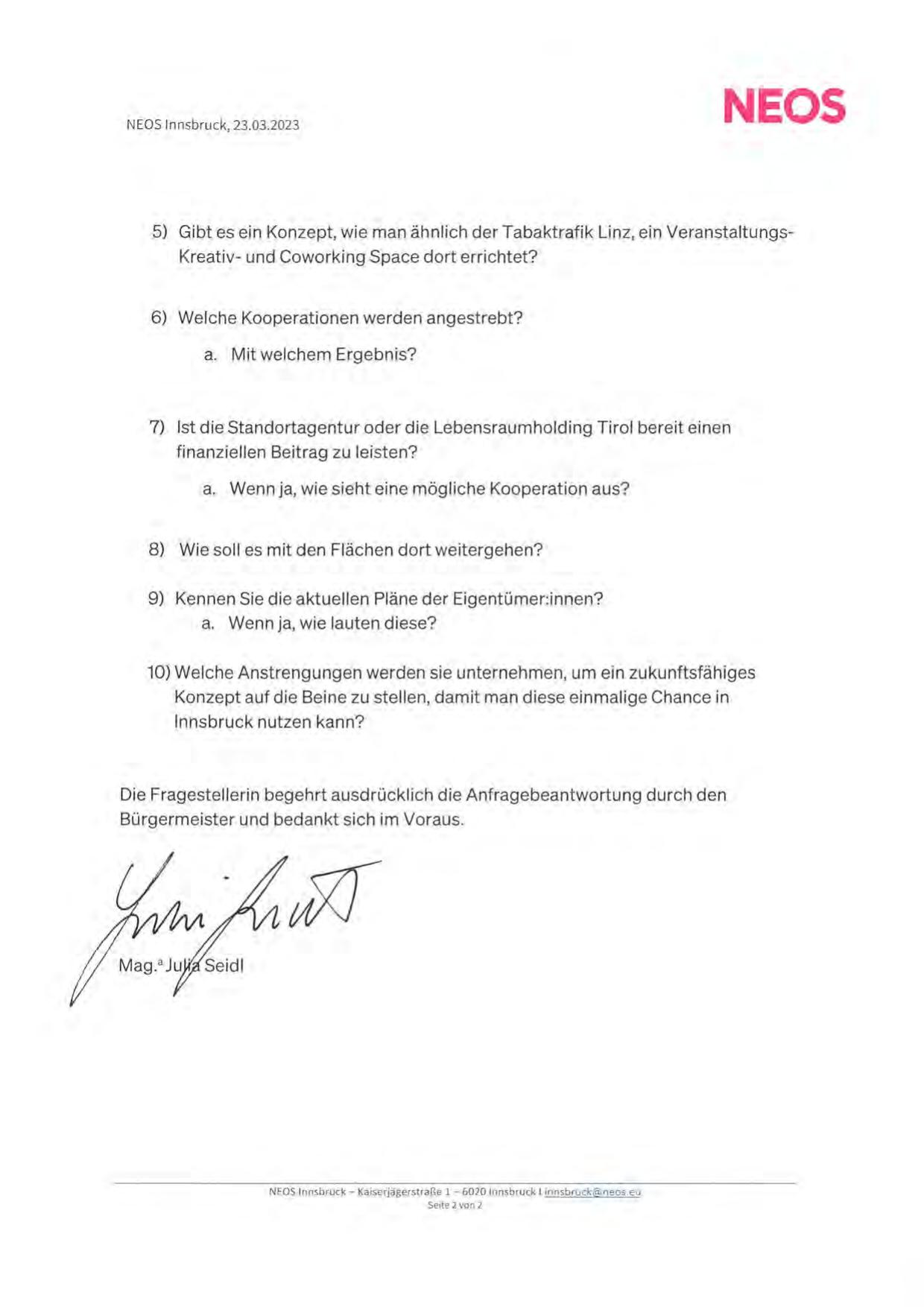 NEOS Innsbruck - Kaiserjägerstraße 1- 6020 Innsbruck I in nsbruc k@neos.eu