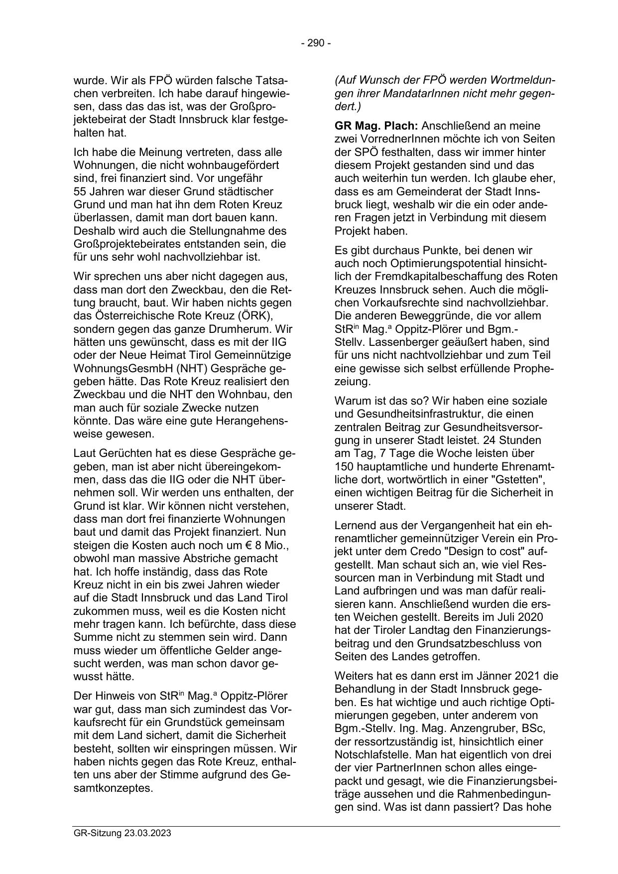 wurde. Wir als FPÖ würden falsche Tatsachen verbreiten. Ich habe darauf hingewiesen, dass das das ist, was der Großprojektebeirat der Stadt Innsbruck klar festgehalten hat.