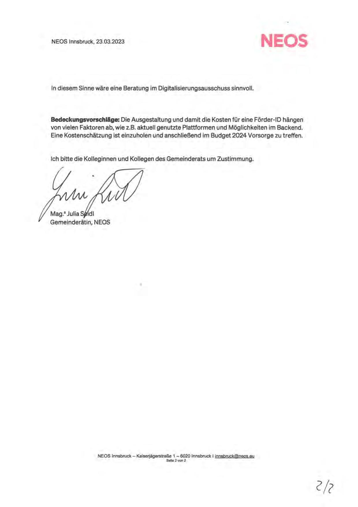 NEOS Innsbruck, 23.03.2023