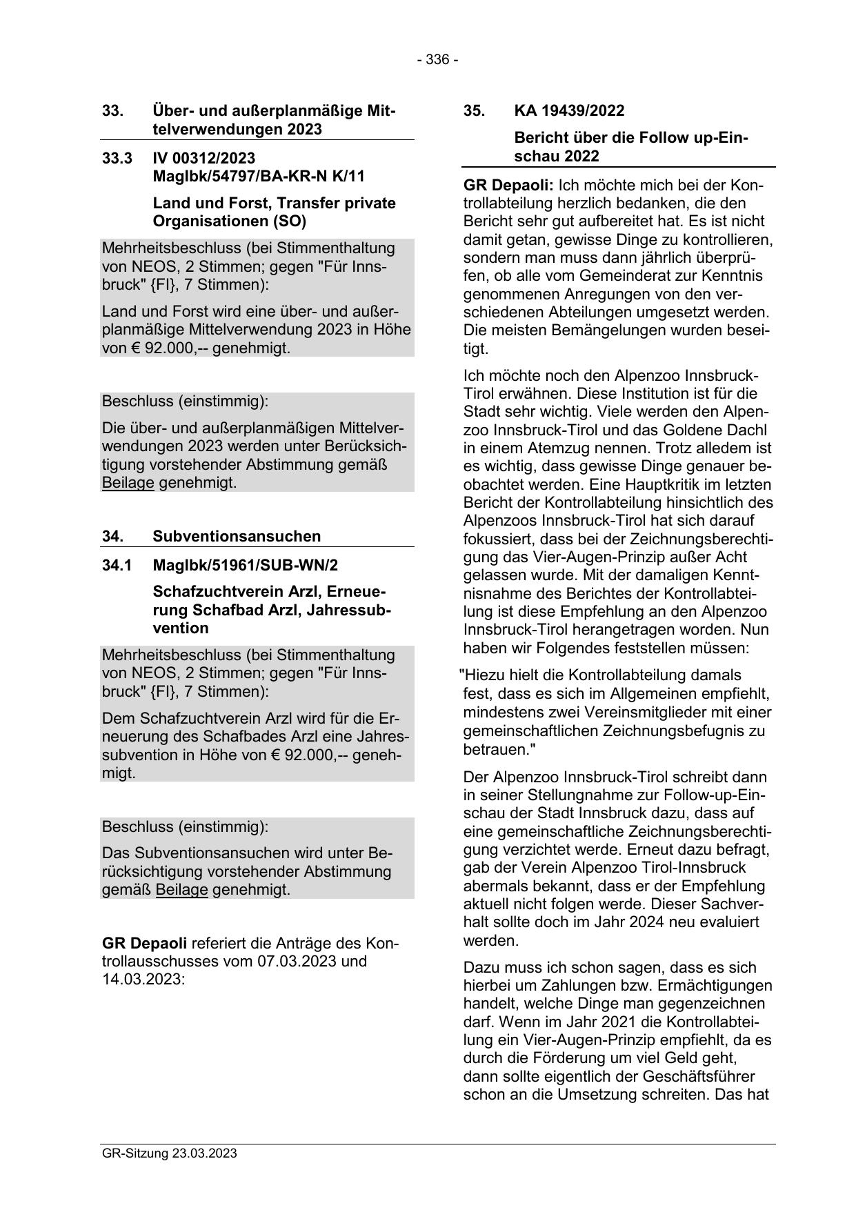 GR Depaoli: Ich möchte mich bei der Kontrollabteilung herzlich bedanken, die den