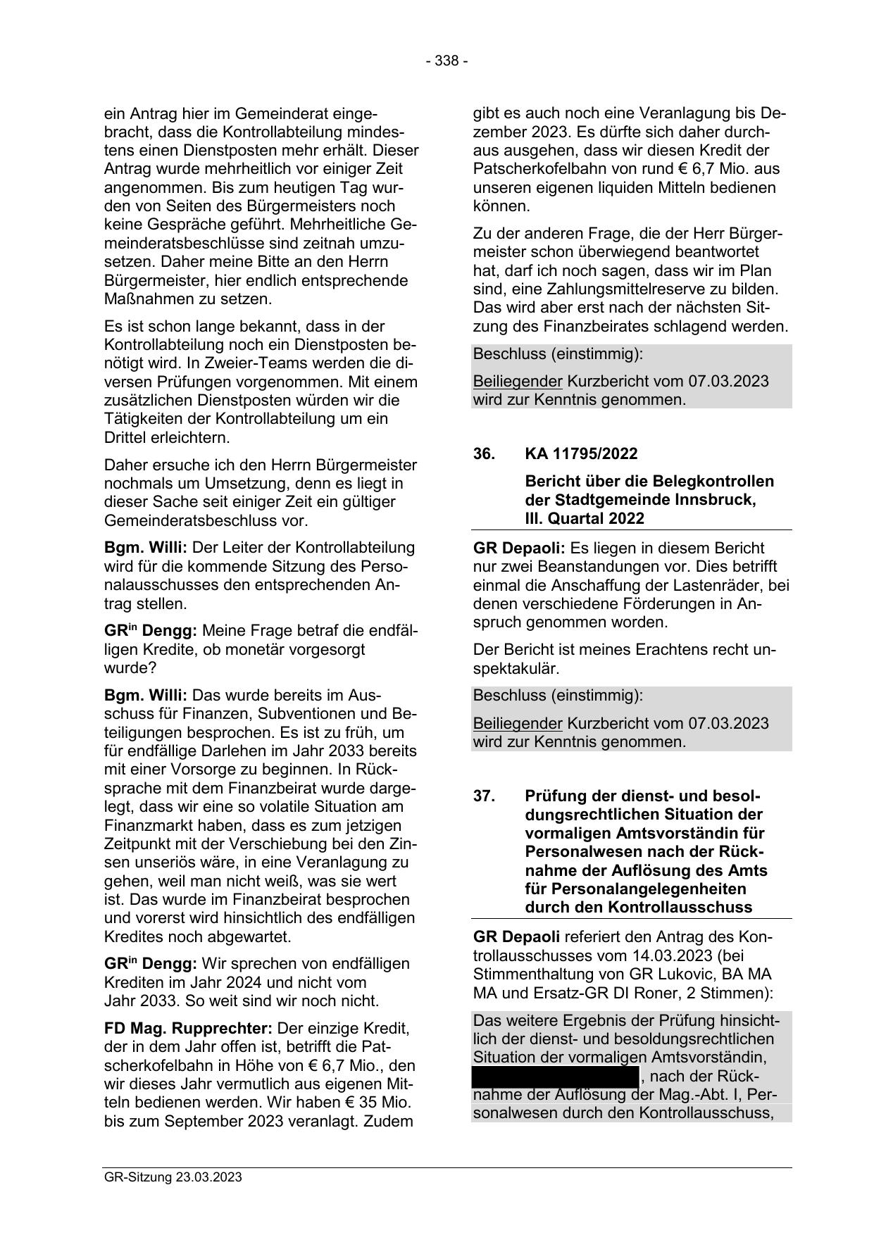 GR Depaoli referiert den Antrag des Kontrollausschusses vom 14.03.2023 (bei