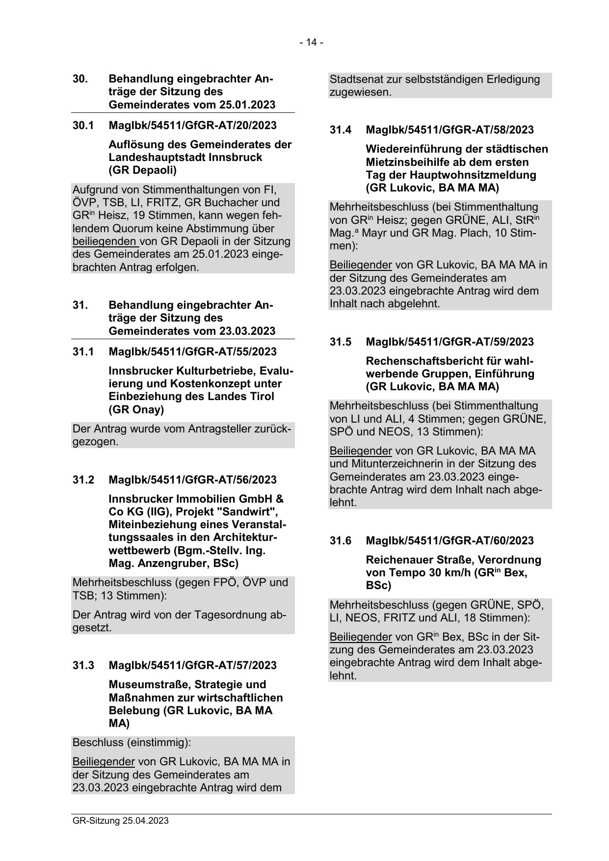 beiliegenden von GR Depaoli in der Sitzung