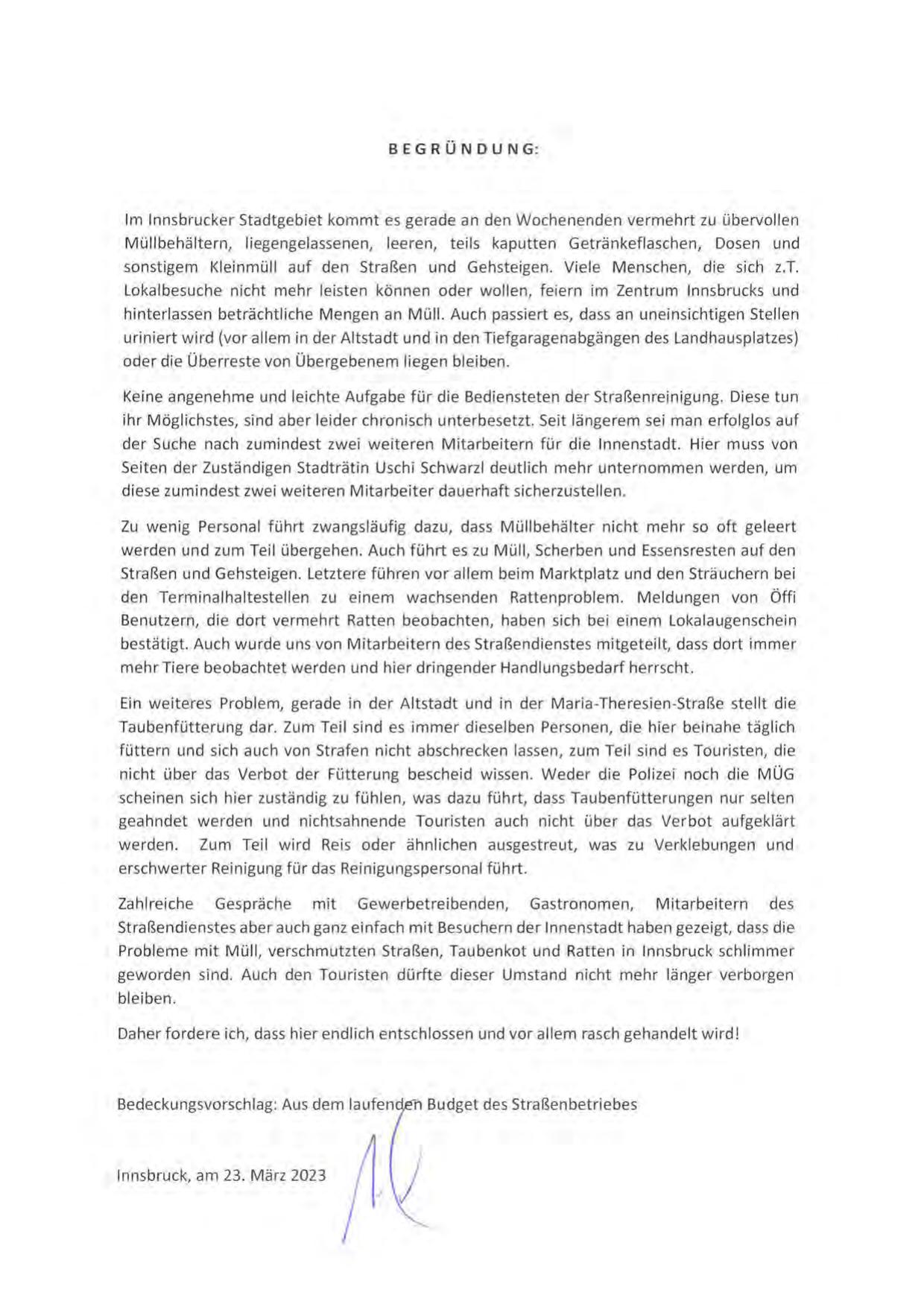 der Suche nach zumindest zwei weiteren Mitarbeitern für die Innenstadt. Hier muss von