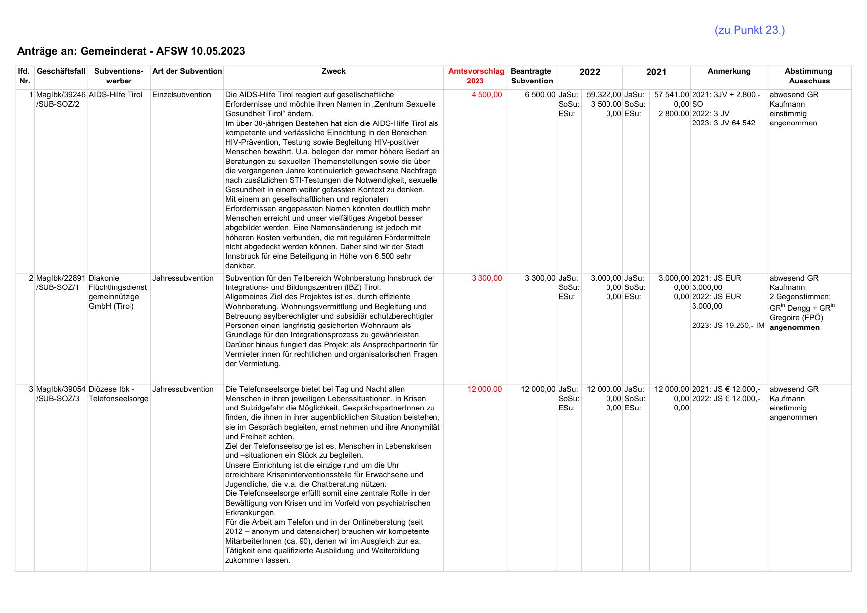 Anträge an: Gemeinderat - AFSW 10.05.2023