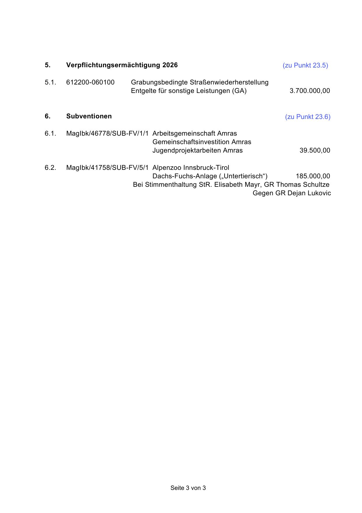 Bei Stimmenthaltung StR. Elisabeth Mayr, GR Thomas Schultze