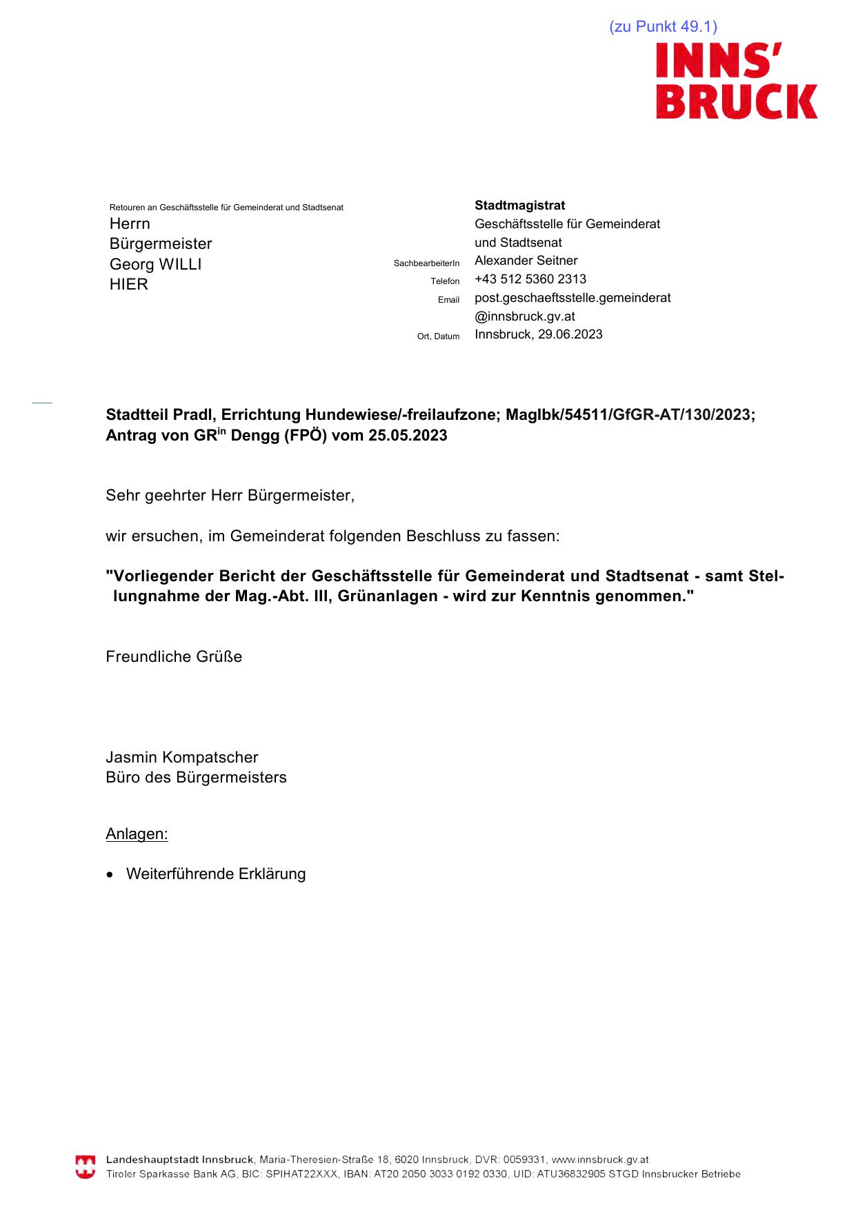 Stadtteil Pradl, Errichtung Hundewiese/-freilaufzone; MagIbk/54511/GfGR-AT/130/2023;
