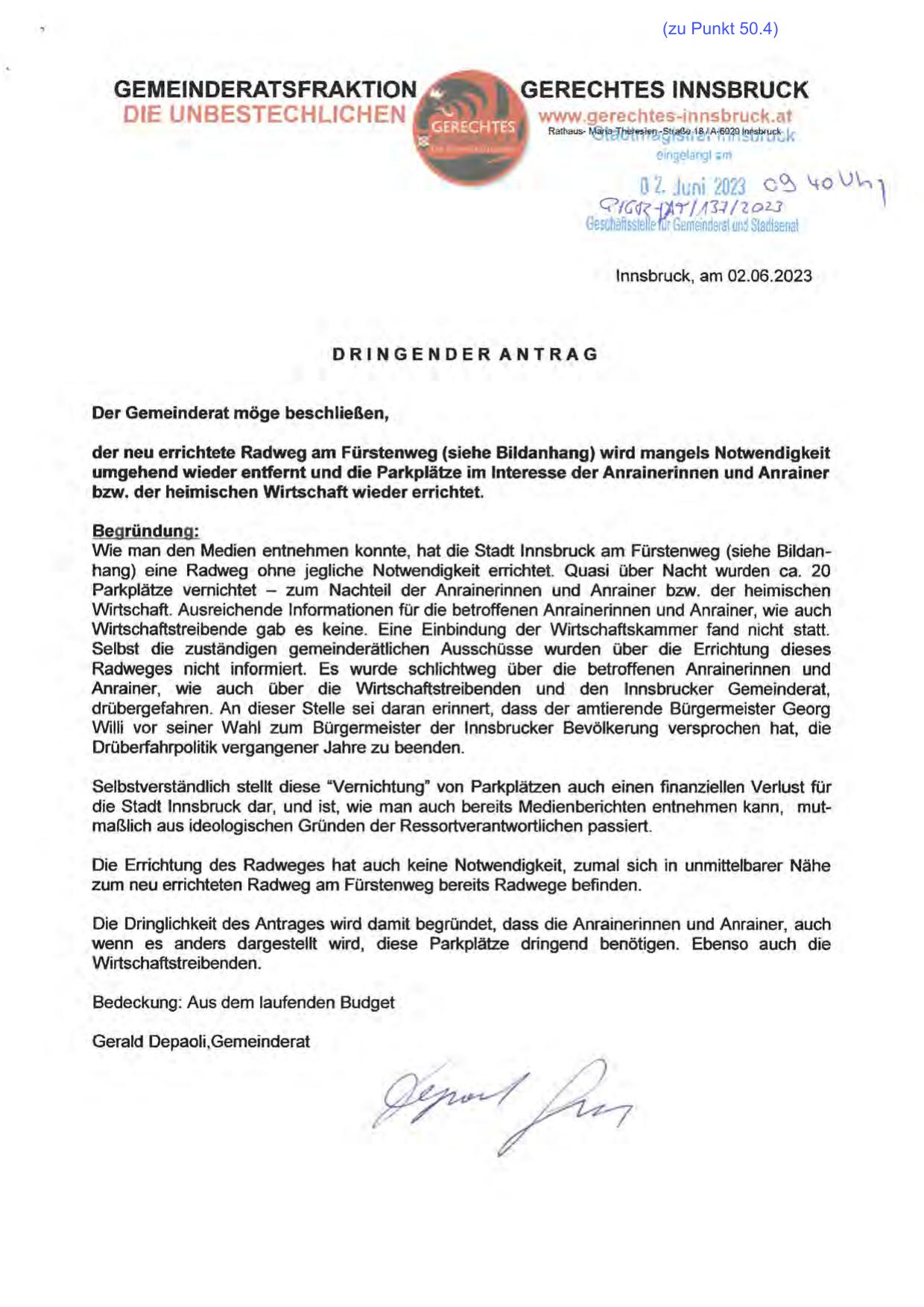 die Stadt Innsbruck dar, und ist, wie man auch bereits Medienberichten entnehmen kann, mutmaßlich aus ideologischen Gründen der Ressortverantwortlichen passiert.