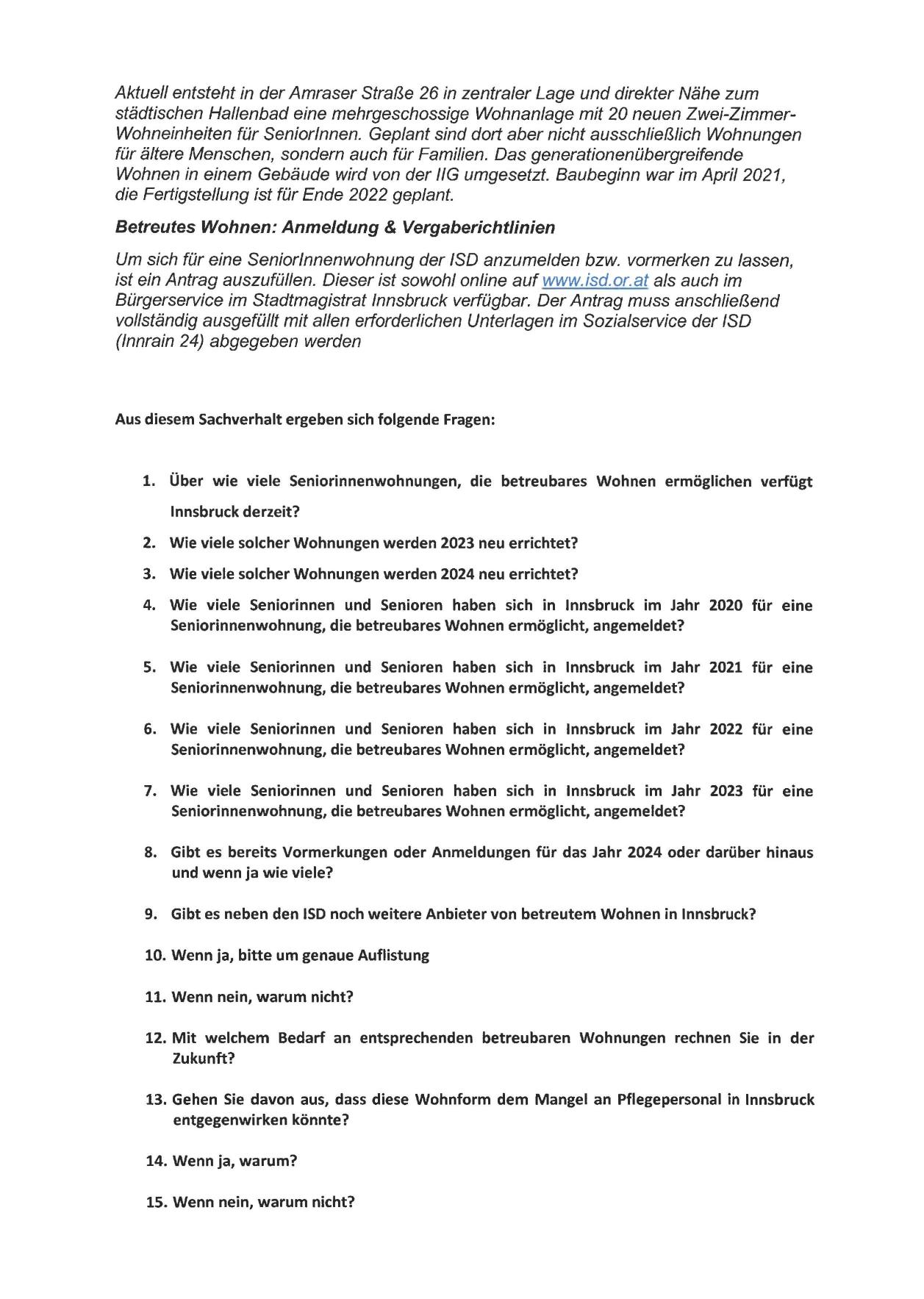 Seniorinnenwohnung, die betreubares Wohnen ermöglicht, angemeldet?