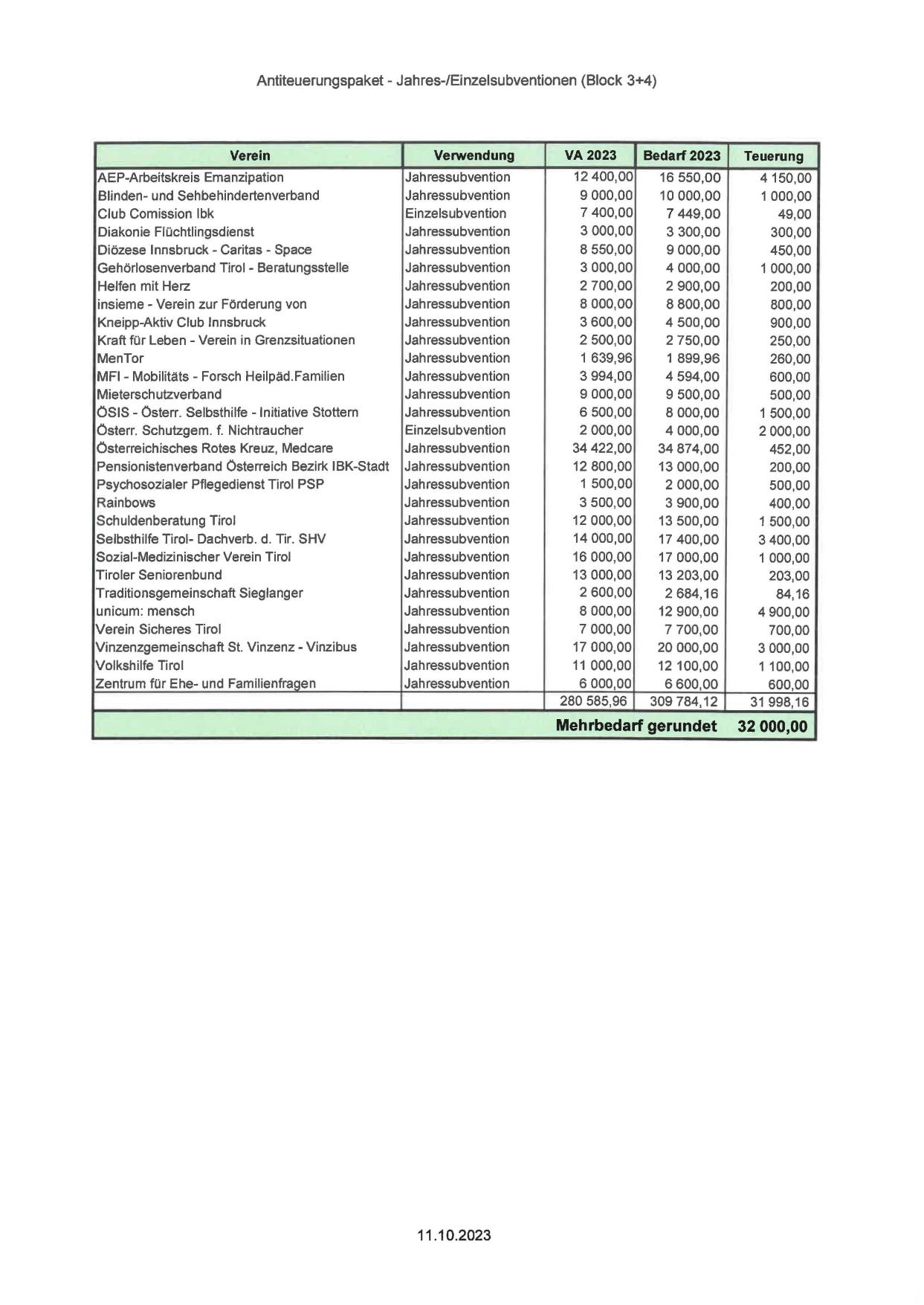 Antiteuerungspaket - Jahres-/Einzelsubventionen (Block 3+4)