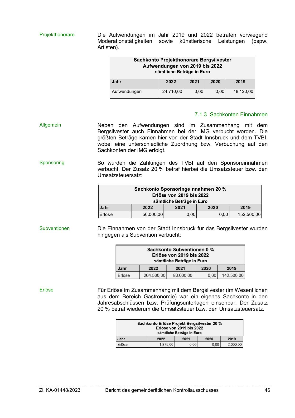 größten Beträge kamen hier von der Stadt Innsbruck und dem TVBI,