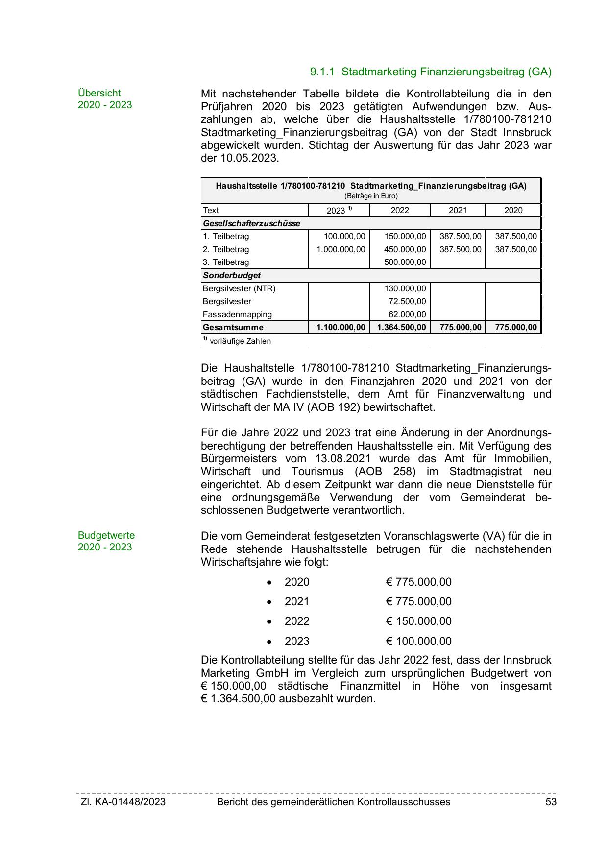 Stadtmarketing_Finanzierungsbeitrag (GA) von der Stadt Innsbruck