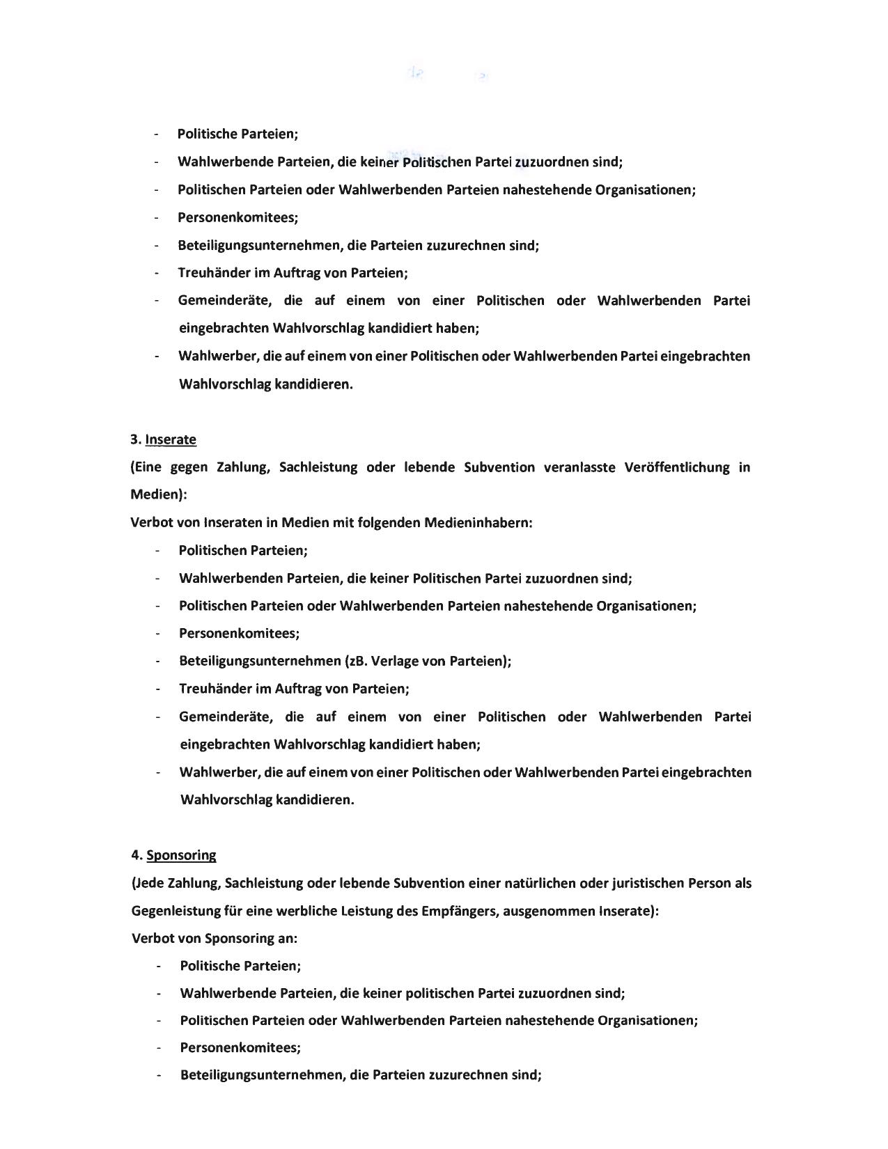 Verbot von Inseraten in Medien mit folgenden Medieninhabern: