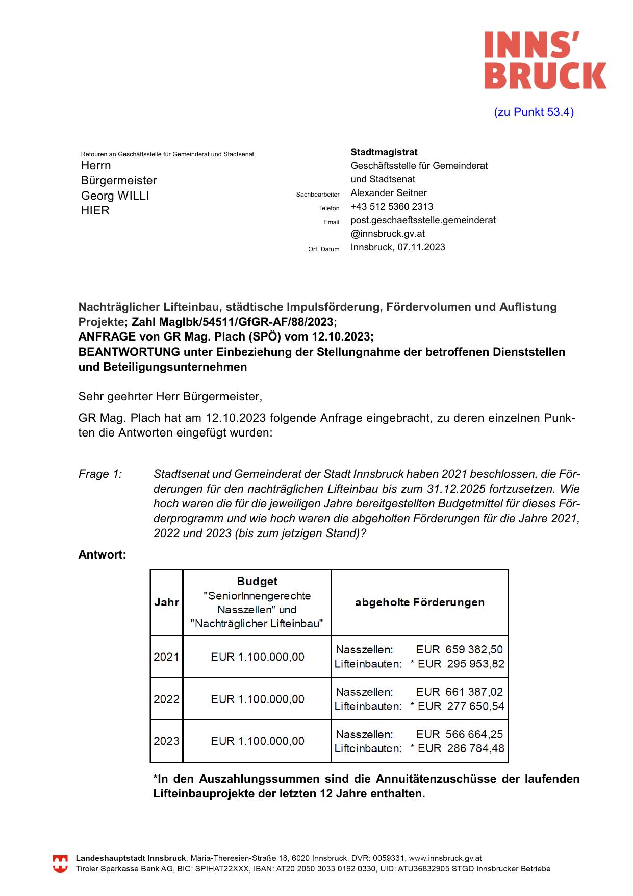 GR Mag. Plach hat am 12.10.2023 folgende Anfrage eingebracht, zu deren einzelnen Punkten die Antworten eingefügt wurden: