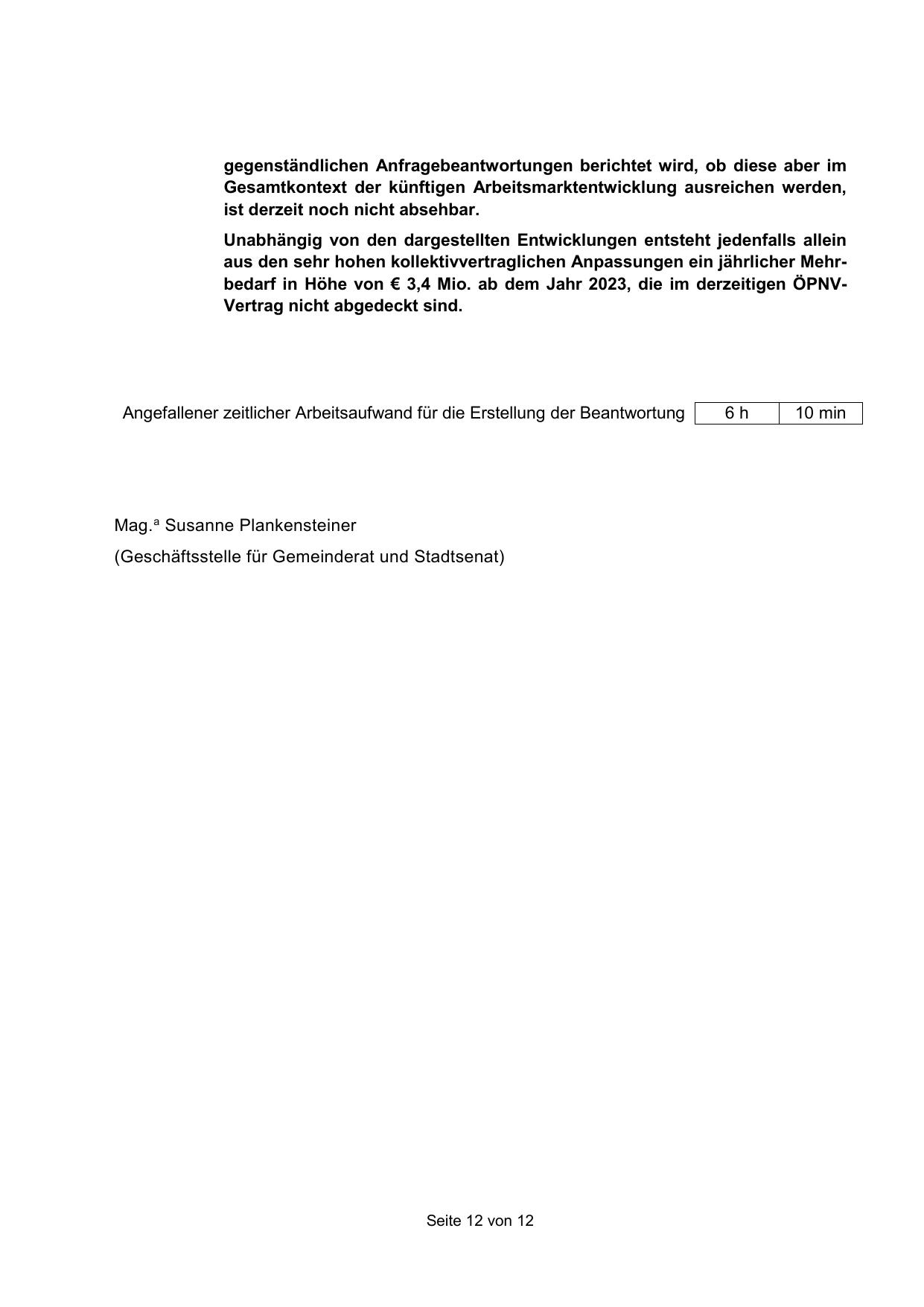 aus den sehr hohen kollektivvertraglichen Anpassungen ein jährlicher Mehrbedarf in Höhe von € 3,4 Mio. ab dem Jahr 2023, die im derzeitigen ÖPNVVertrag nicht abgedeckt sind.