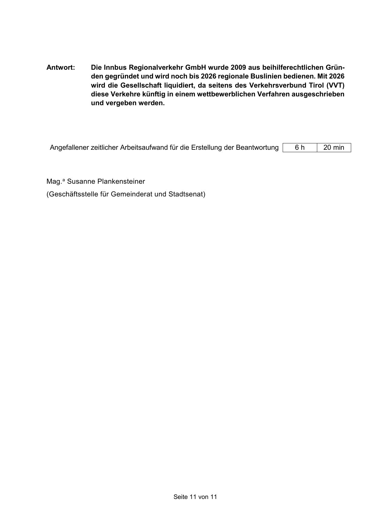 Die Innbus Regionalverkehr GmbH wurde 2009 aus beihilferechtlichen Gründen gegründet und wird noch bis 2026 regionale Buslinien bedienen. Mit 2026