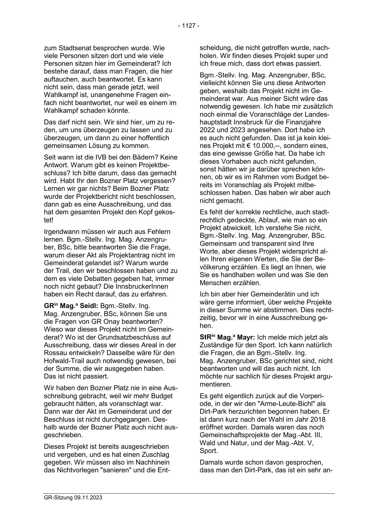 GRin Mag.a Seidl: Bgm.-Stellv. Ing.