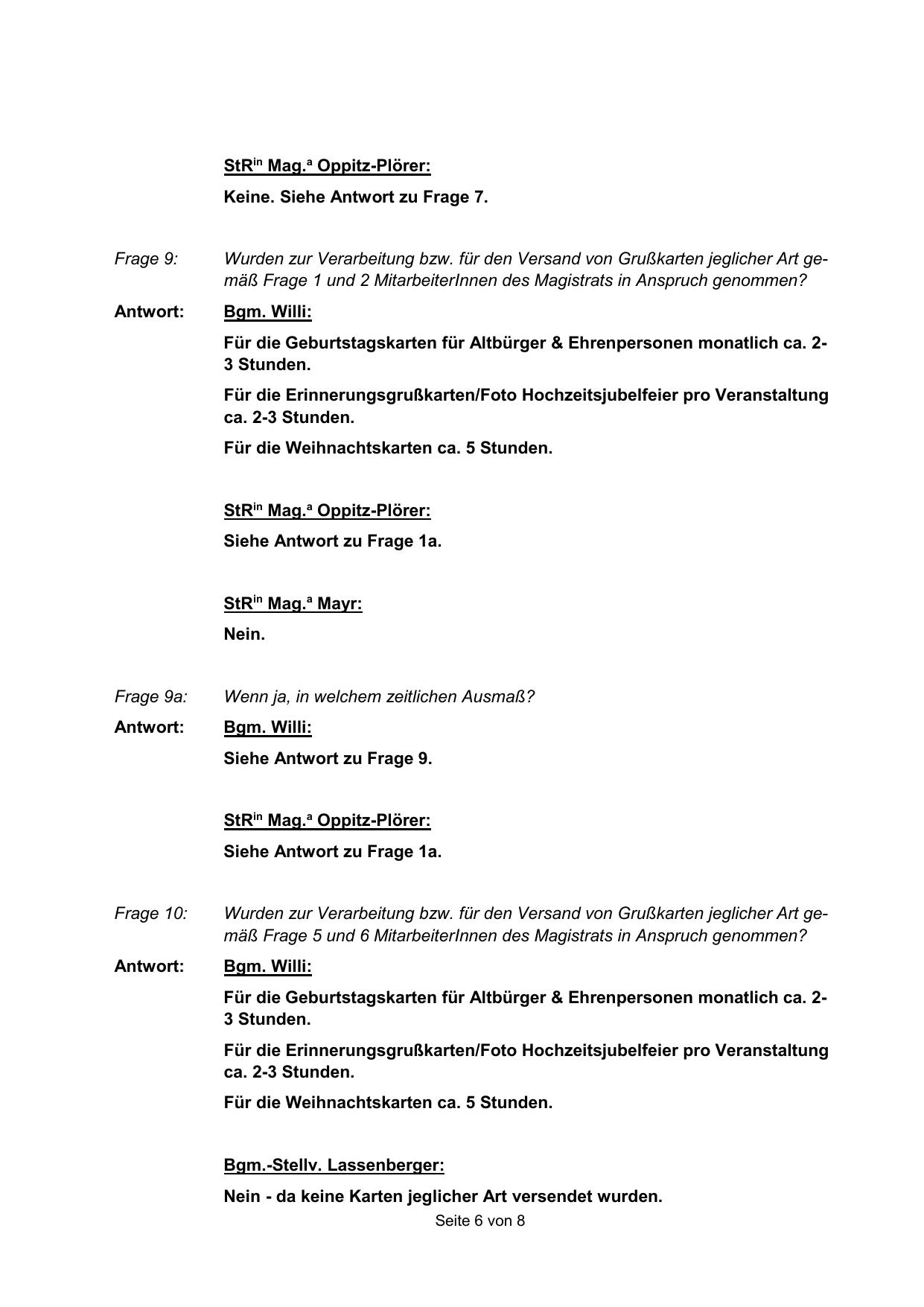 Wurden zur Verarbeitung bzw. für den Versand von Grußkarten jeglicher Art gemäß Frage 5 und 6 MitarbeiterInnen des Magistrats in Anspruch genommen?