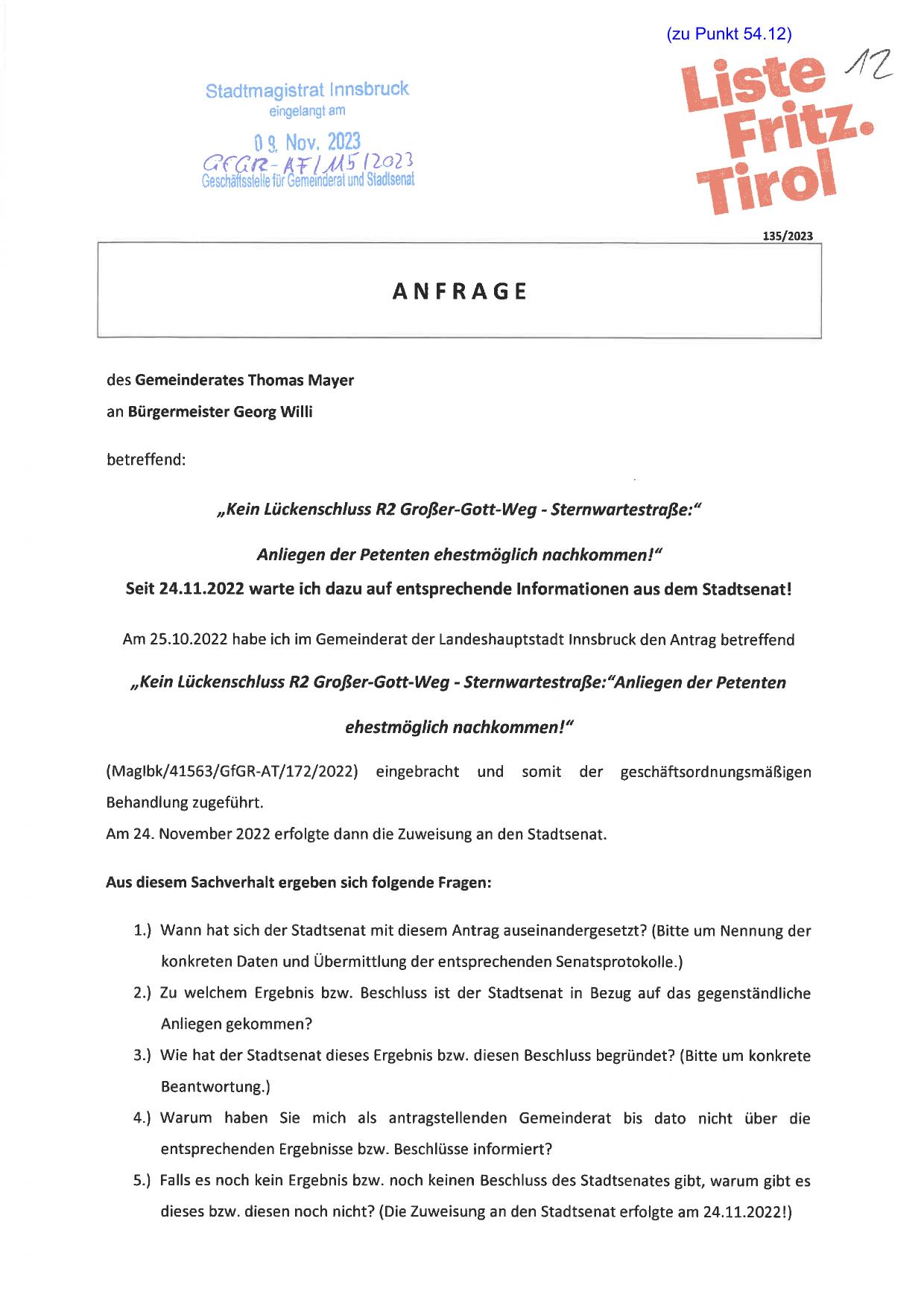 dieses bzw. diesen noch nicht? (Die Zuweisung an den Stadtsenat erfolgte am 24. 11. 2022!)