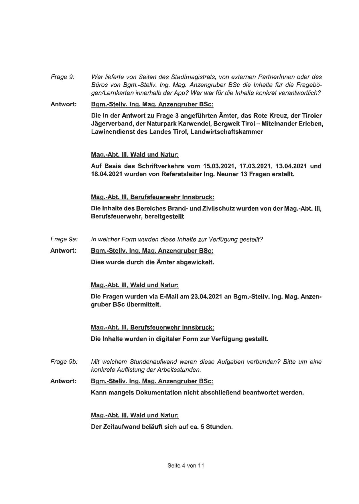 Die Fragen wurden via E-Mail am 23.04.2021 an Bgm.-Stellv. Ing. Mag. Anzengruber BSc übermittelt.