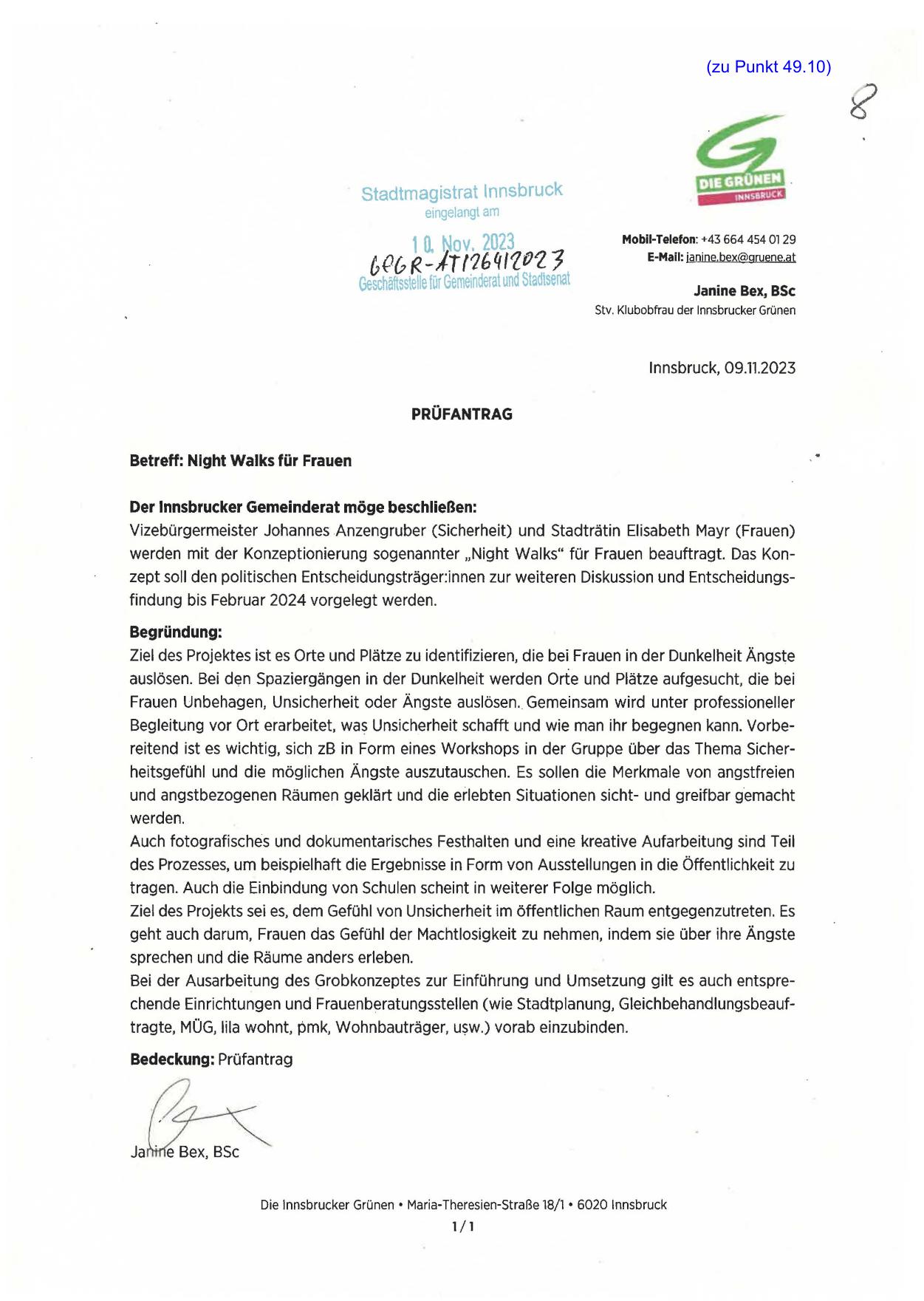 werden mit der Konzeptionierung sogenannter „Night Walks" für Frauen beauftragt. Das Konzept soll den politischen Entscheidungsträger:innen zur weiteren Diskussion und Entscheidungsfindung bis Februar 2024 vorgelegt werden.