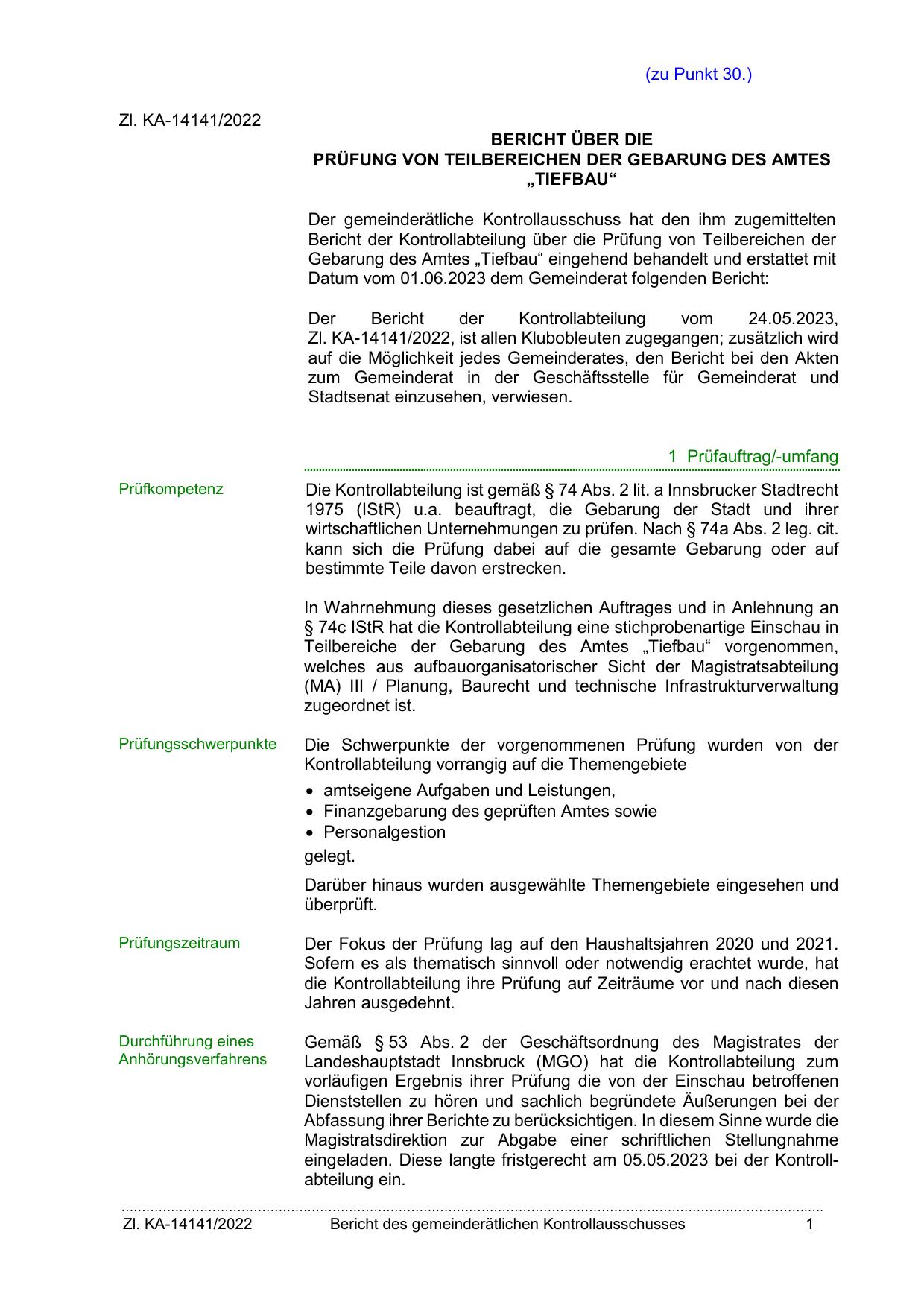 Landeshauptstadt Innsbruck (MGO) hat die Kontrollabteilung zum