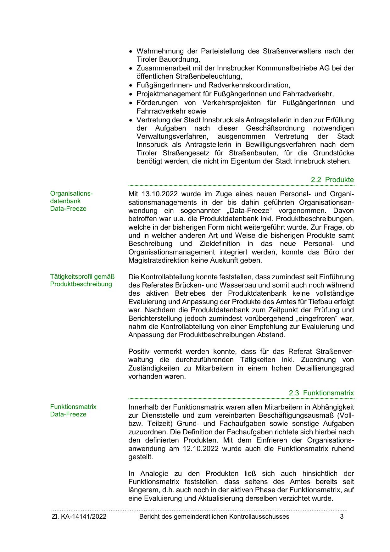 Positiv vermerkt werden konnte, dass für das Referat Straßenverwaltung die durchzuführenden Tätigkeiten inkl. Zuordnung von