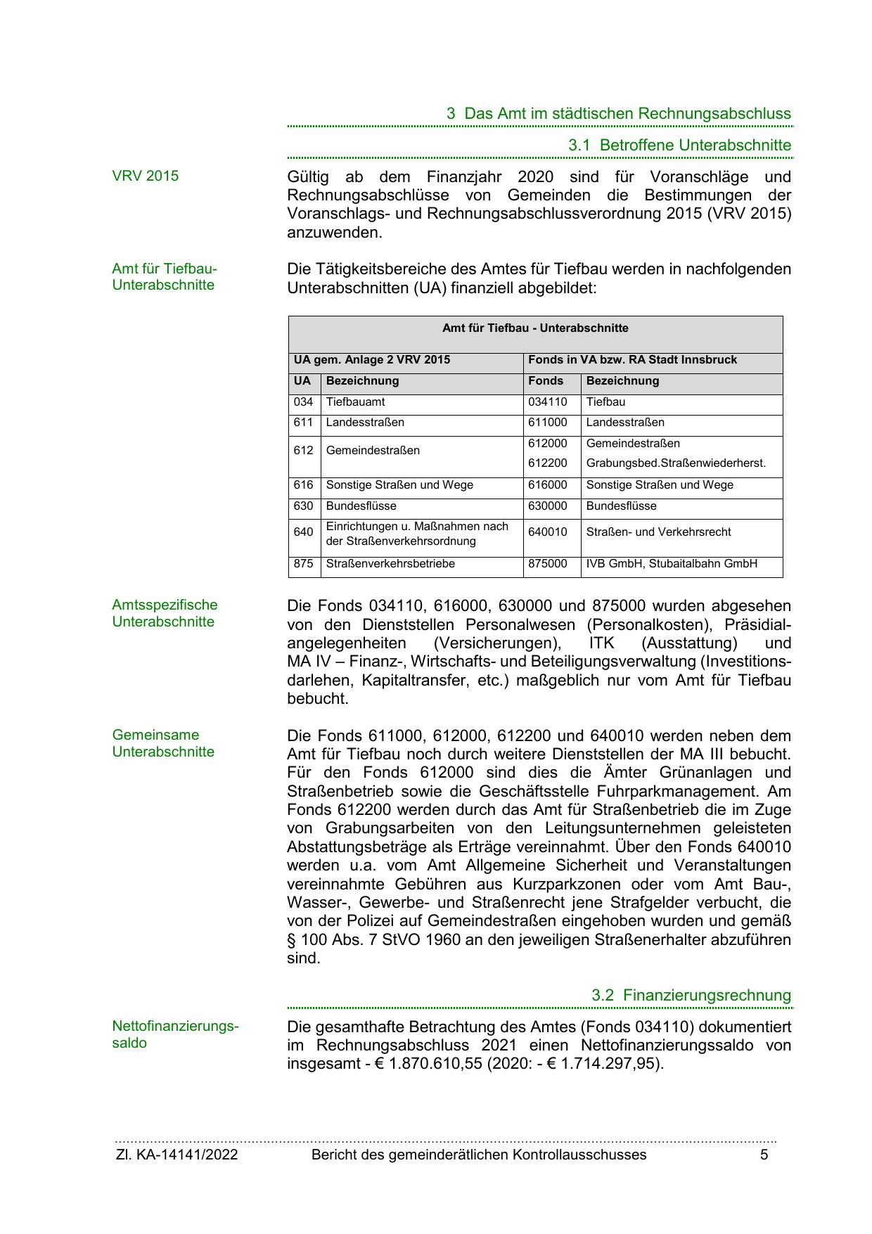 MA IV – Finanz-, Wirtschafts- und Beteiligungsverwaltung (Investitionsdarlehen, Kapitaltransfer, etc.) maßgeblich nur vom Amt für Tiefbau