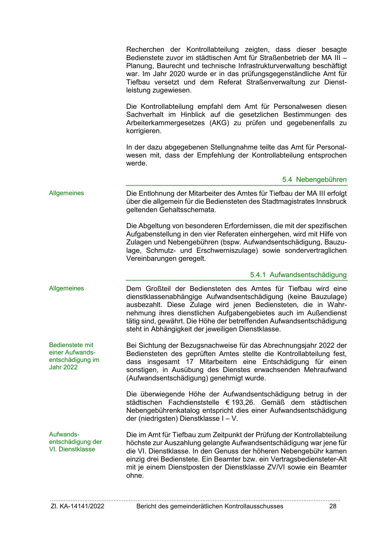 In der dazu abgegebenen Stellungnahme teilte das Amt für Personalwesen mit, dass der Empfehlung der Kontrollabteilung entsprochen