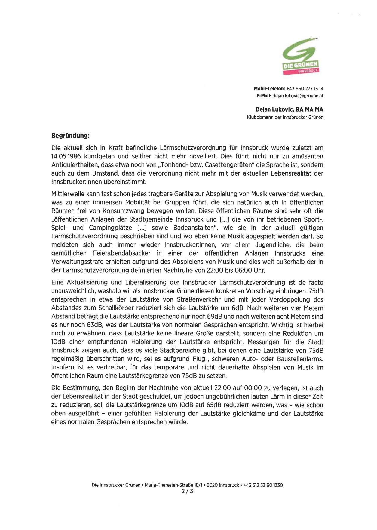 Die lnnsbrucker Grünen • Maria-Theresien-Straße 18/1 • 6020 Innsbruck• +43 512 53601330