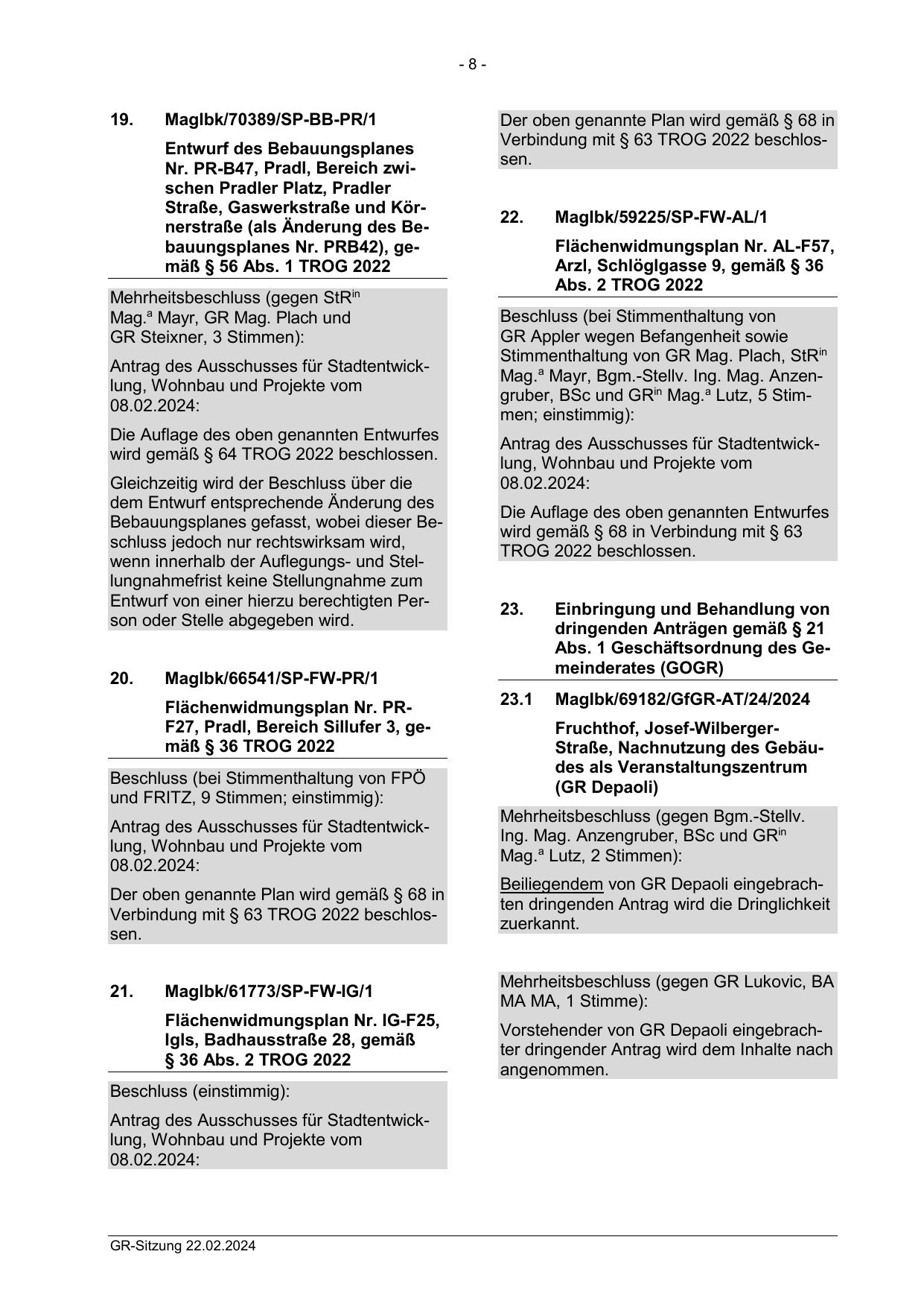 Verbindung mit § 63 TROG 2022 beschlossen.