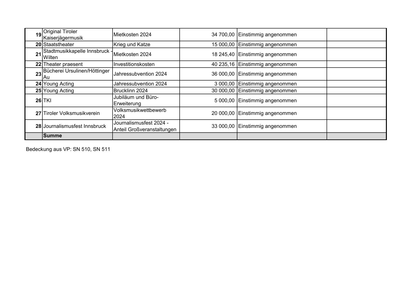 Stadtmusikkapelle Innsbruck Mietkosten 2024