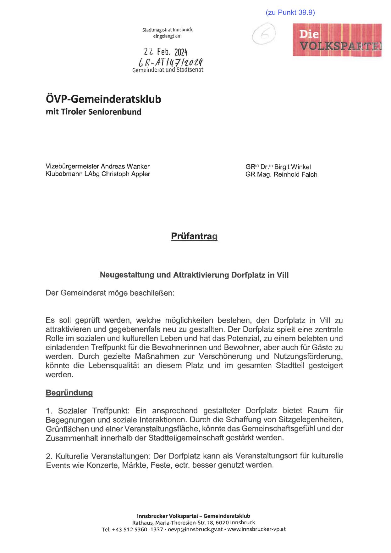 lnnsbrucker Volkspartei - Gemeinderatsklub