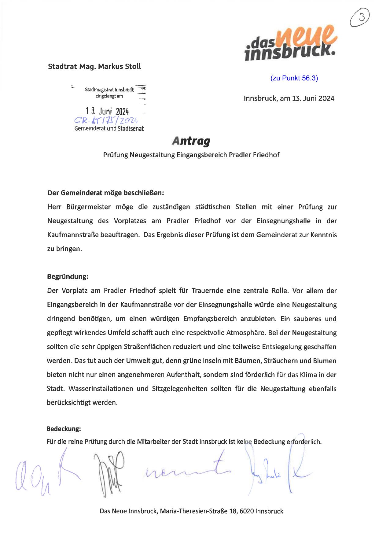 Prüfung Neugestaltung Eingangsbereich Pradler Friedhof
