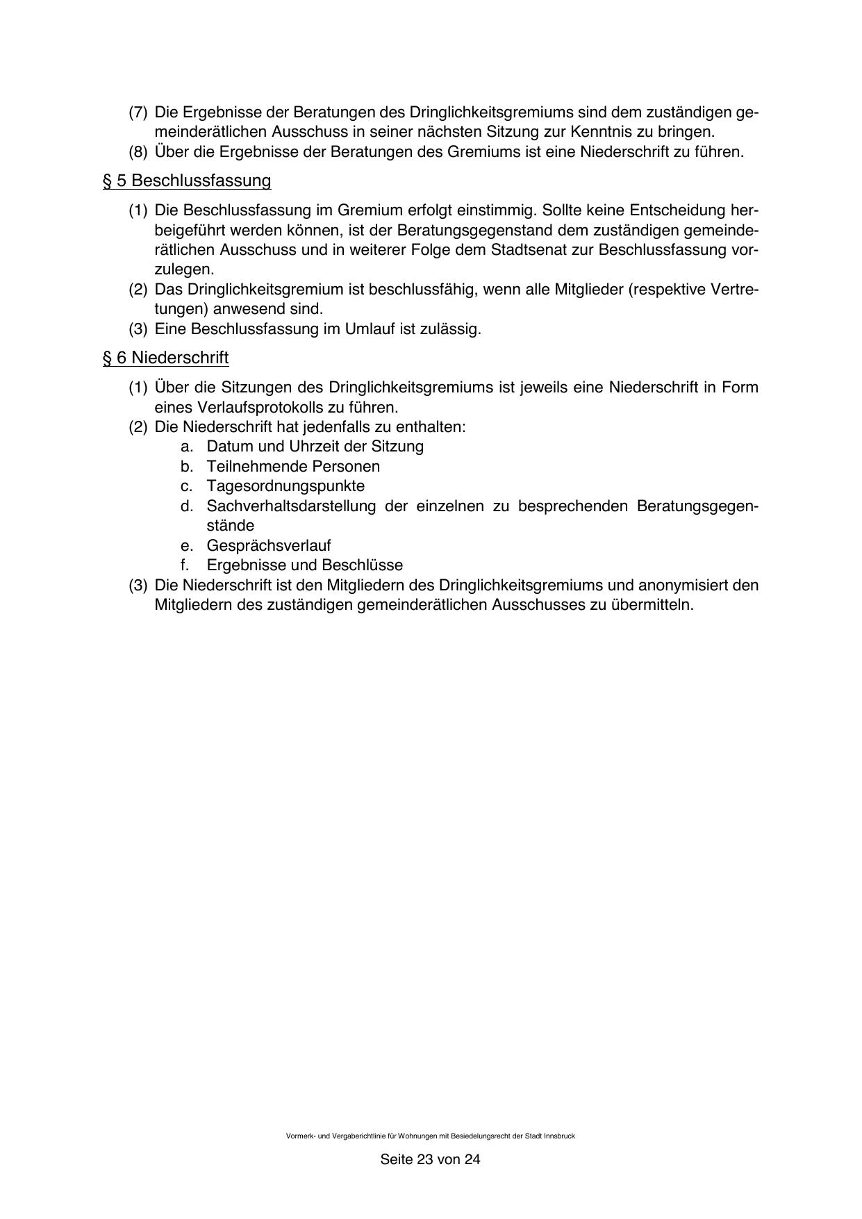 Vormerk- und Vergaberichtlinie für Wohnungen mit Besiedelungsrecht der Stadt Innsbruck