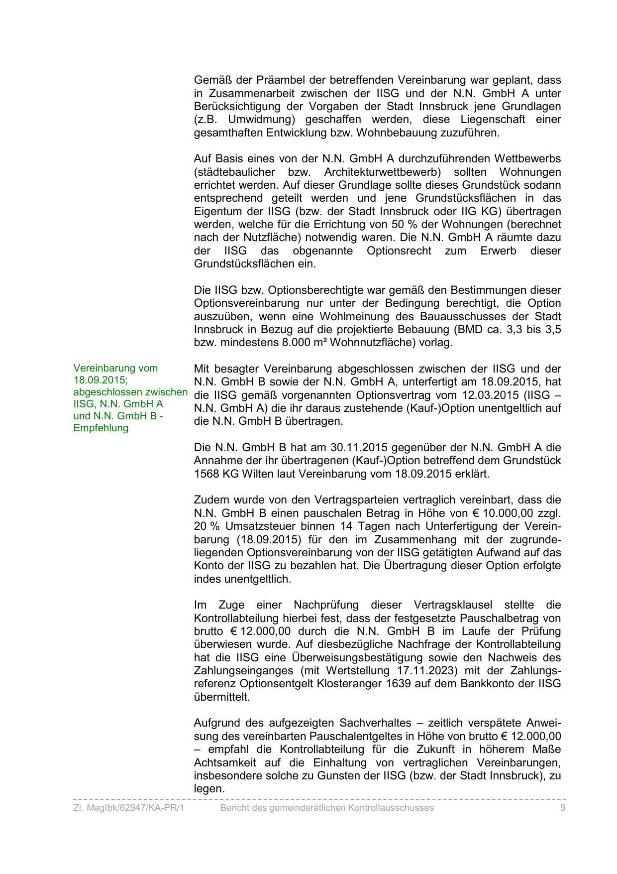 Eigentum der IISG (bzw. der Stadt Innsbruck oder IIG KG) übertragen