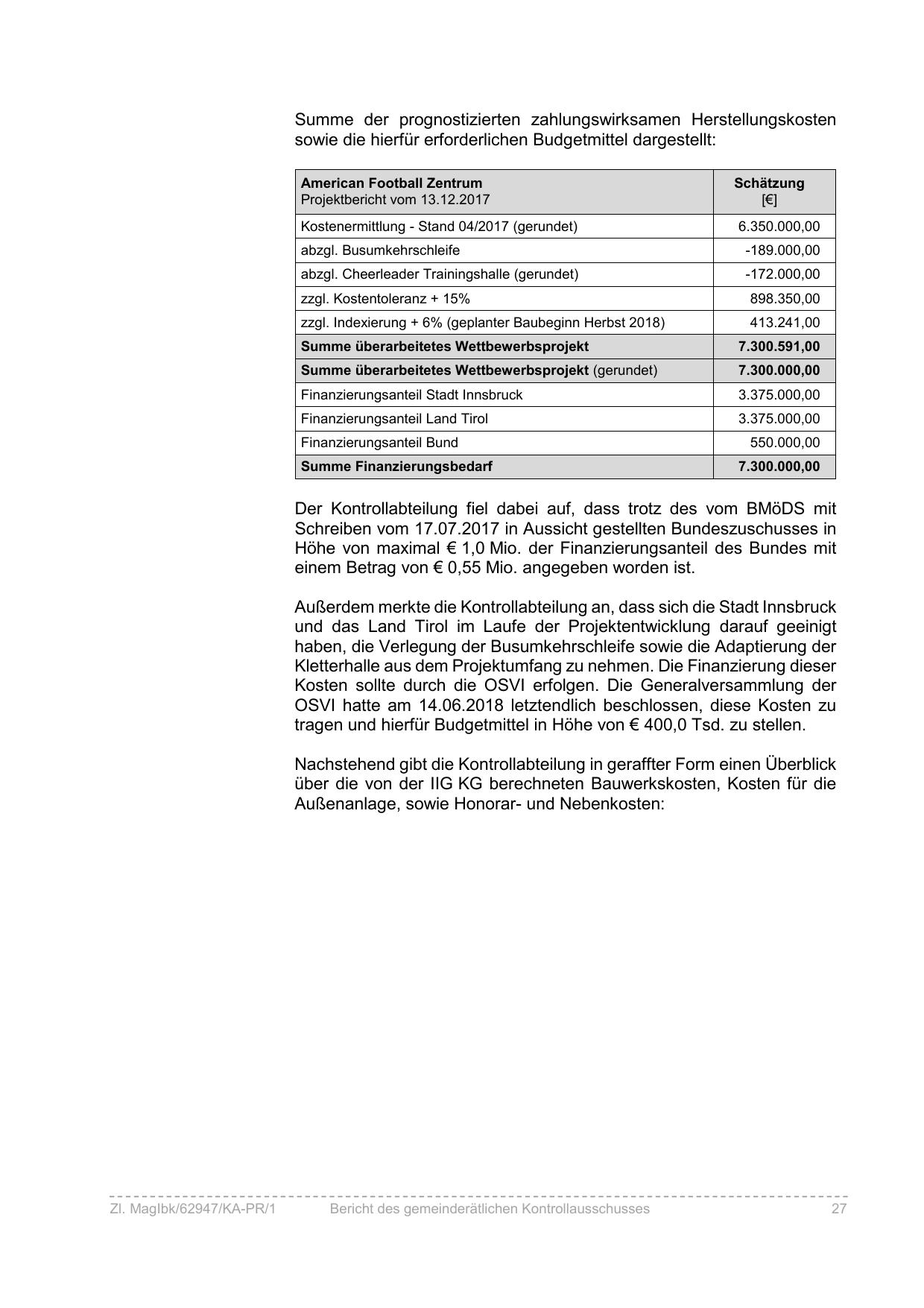 Außerdem merkte die Kontrollabteilung an, dass sich die Stadt Innsbruck