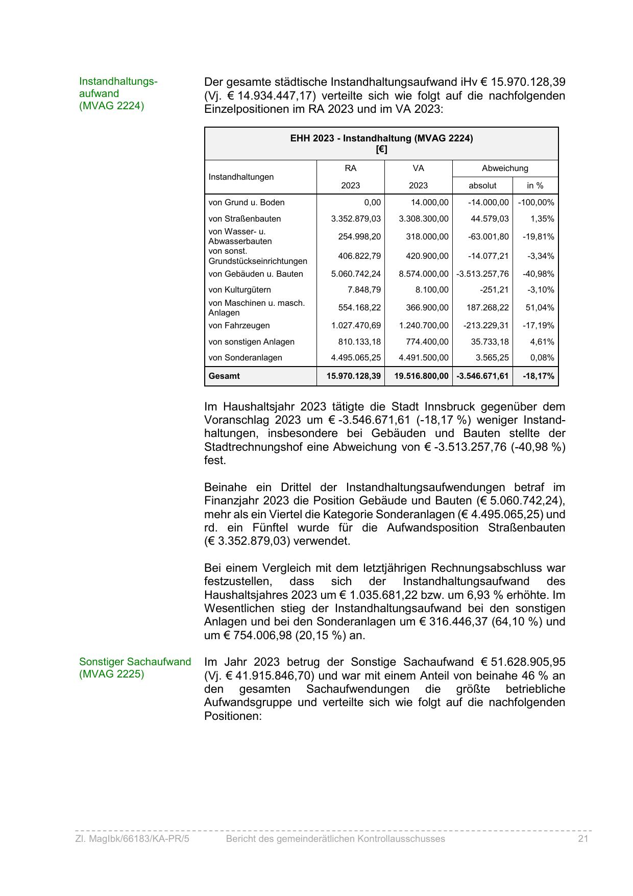 Stadtrechnungshof eine Abweichung von € -3.513.257,76 (-40,98 %)